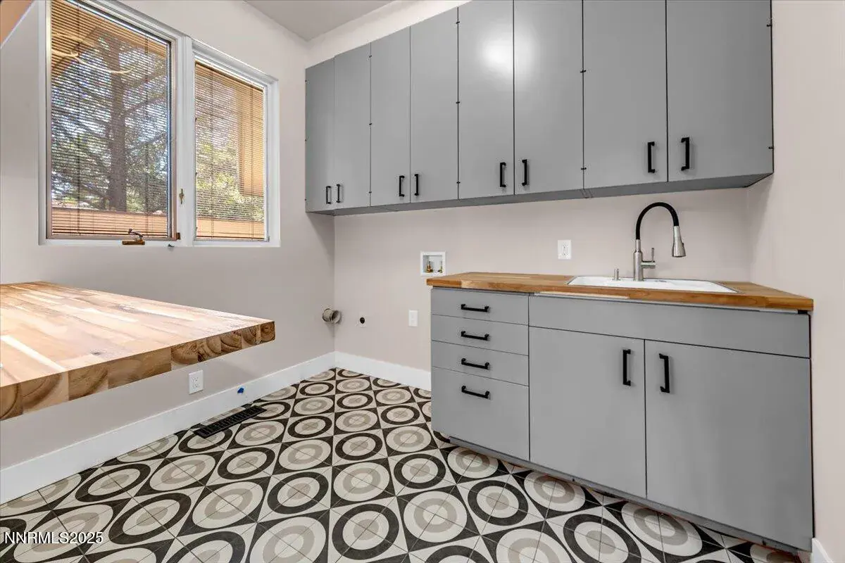 Cabinets, Laundry Room, Shelves, Sink, Washer Hookup
