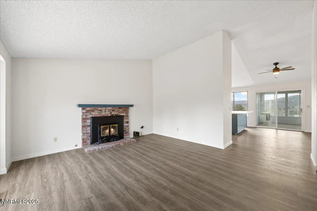 Situated in an elevated setting, this property offers city and mountain views that can be enjoyed from the expansive deck, enclosed sunroom, kitchen, and main living areas. The home’s position provides broad outlooks toward downtown Reno and the surrounding foothills. Recent updates include quartz kitchen countertops, new stainless-steel stove, dishwasher, and microwave, updated lighting, and fresh interior paint. New vinyl plank flooring is installed in the main living areas, with new carpeting in the bedrooms. The living and dining areas include a fireplace and connect directly to the deck and sunroom, allowing for convenient access between interior and exterior spaces. The enclosed sunroom features a gas stove and provides year-round usability. Bathrooms have been updated with new quartz vanity countertops and new toilets. Additional features include RV parking, a partial finished two-car garage, zero-scape front yard landscaping, and generous deck space. The property is located with access to downtown Reno, shopping, and major roadways, and offers a combination of elevated views, outdoor living space, and recent interior updates.