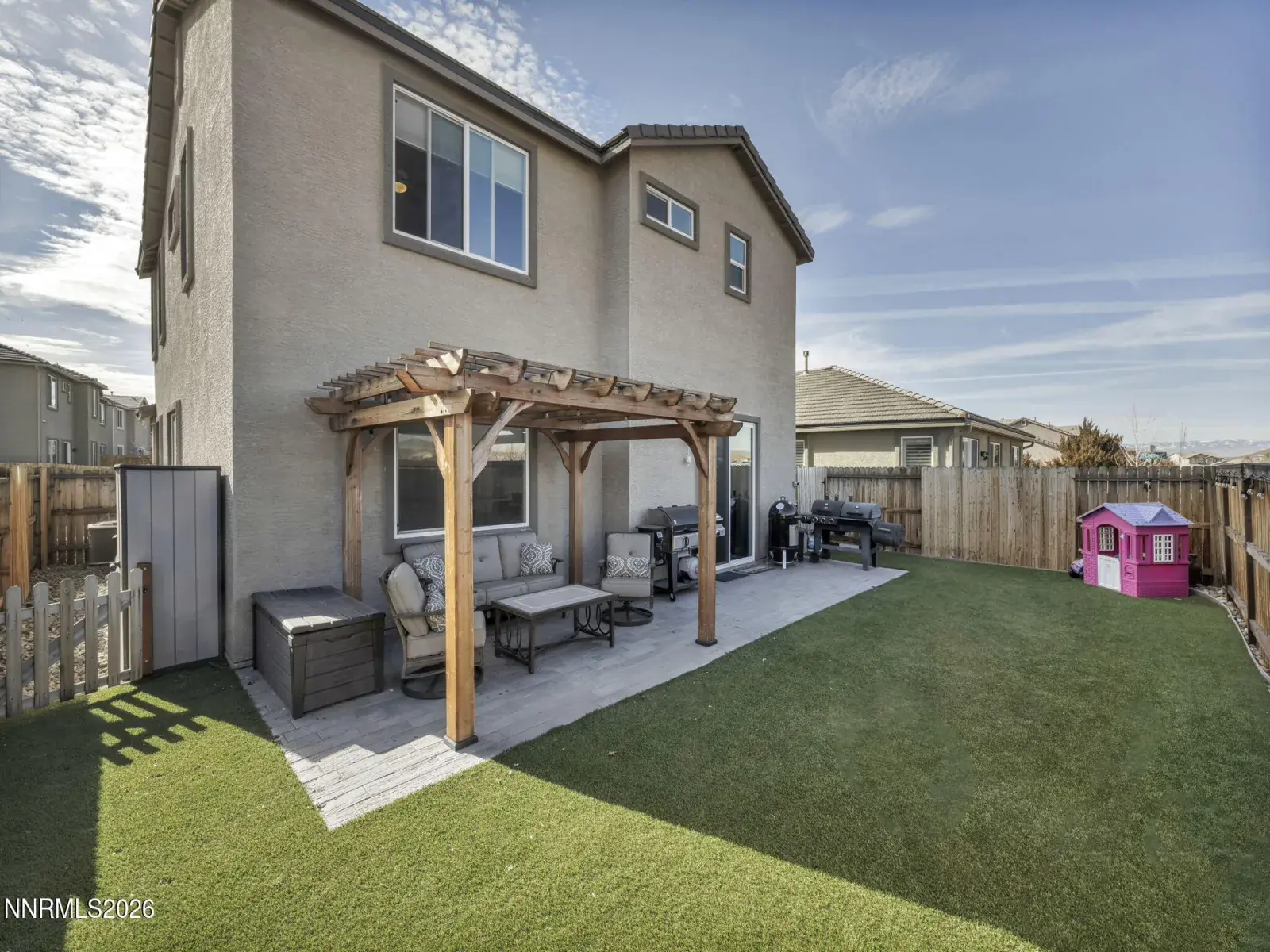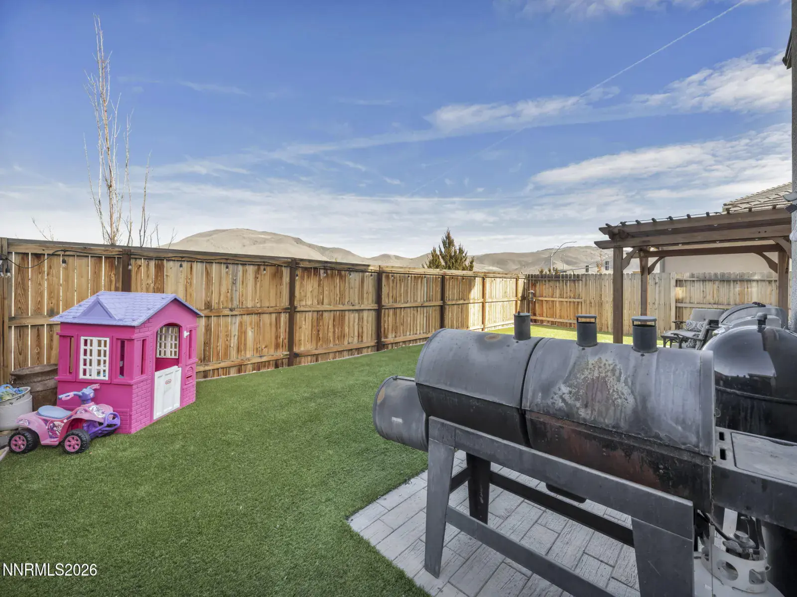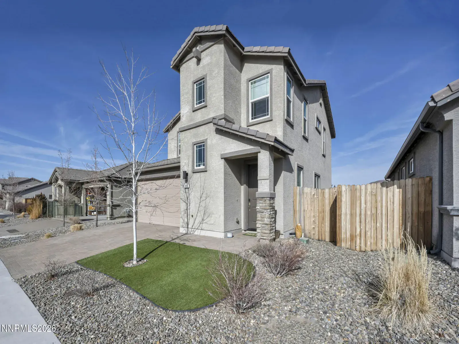 Fantastic opportunity to own a practically new home in desirable South Reno! This beautifully upgraded 3-bedroom, 2.5-bath residence with a versatile loft is just 6 years old and has been meticulously maintained. Ideally located next to Cyan Park—South Reno’s premier dog park—this home offers sweeping mountain views from the living area and the upstairs primary suite. Designed for low-maintenance living and a busy lifestyle, the home features new turf in both the front and backyard, a new pergola, and elegant wood-grained porcelain pavers, creating an inviting outdoor space perfect for entertaining. Inside, you’ll love the custom walnut built-in bookshelves in the great room, electric fireplace, Lutron smart switches, and smart keyless entry. The spacious kitchen includes a large island, pantry, newer dishwasher, and a custom built-in bench in the dining nook—ideal for casual meals or hosting. Comfort and efficiency abound with ceiling fans in all bedrooms, the loft, and living room, a tankless water heater, and a new insulated garage door. Enjoy close proximity to all that Reno has to offer while coming home to modern comfort, thoughtful upgrades, and stunning surroundings. A must-see home to truly appreciate all it has to offer!
