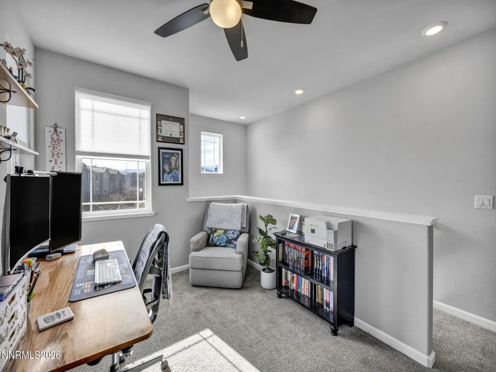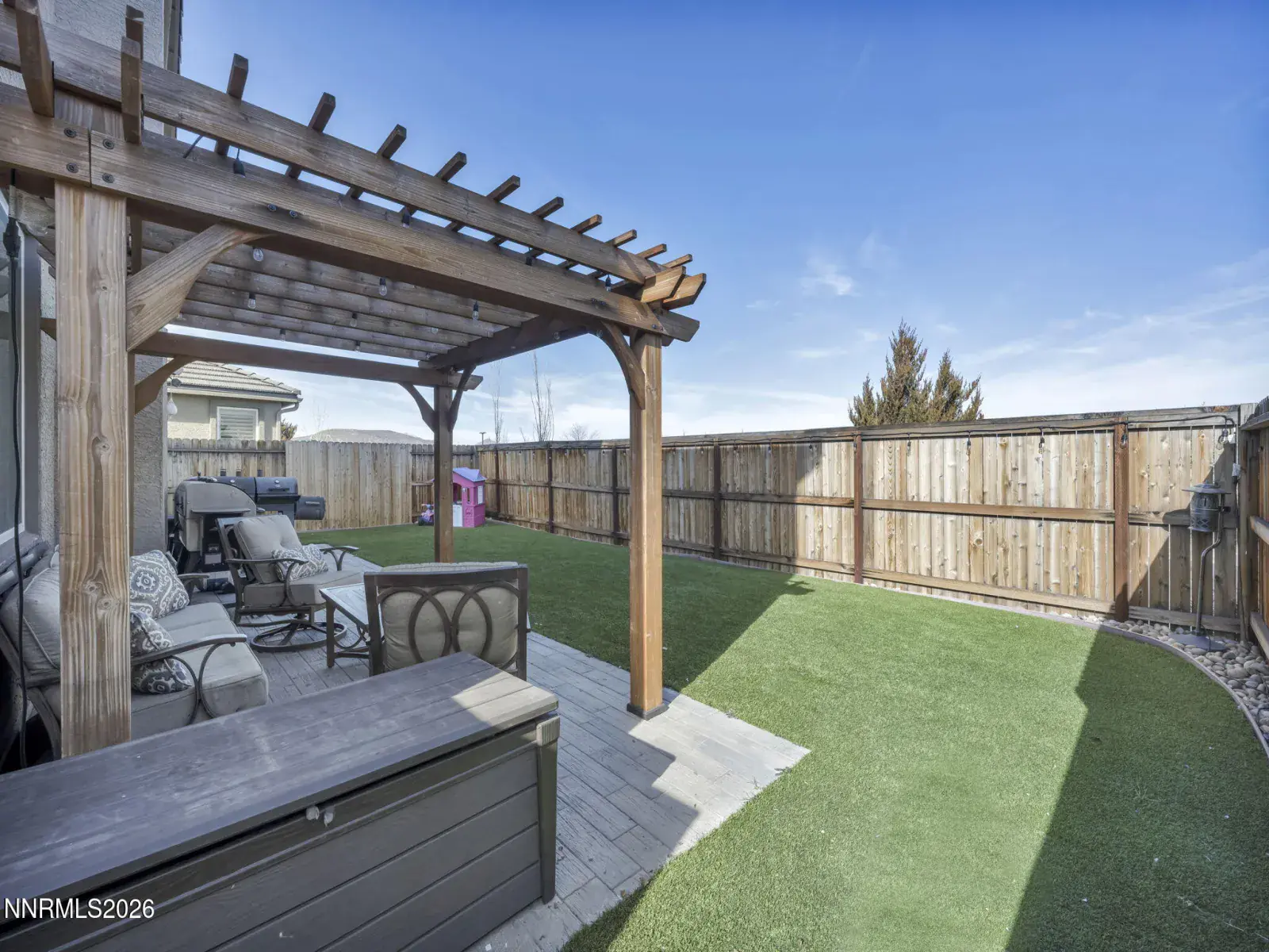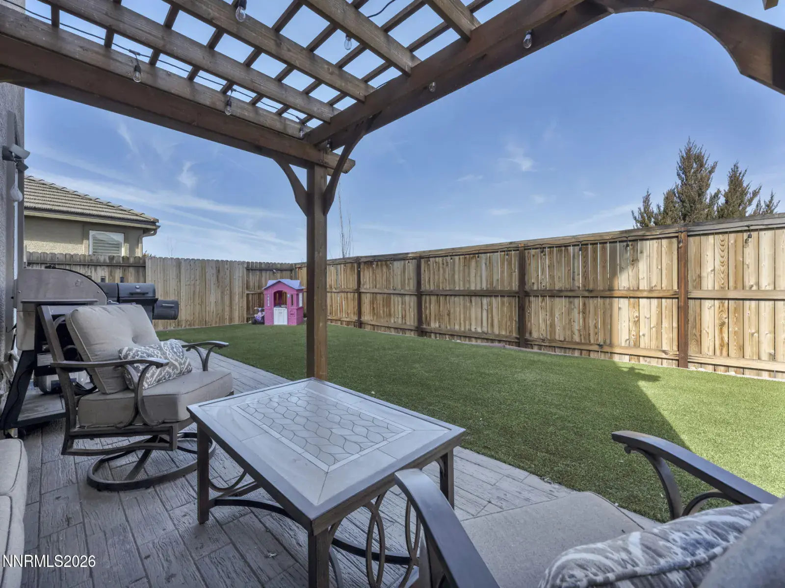 Fantastic opportunity to own a practically new home in desirable South Reno! This beautifully upgraded 3-bedroom, 2.5-bath residence with a versatile loft is just 6 years old and has been meticulously maintained. Ideally located next to Cyan Park—South Reno’s premier dog park—this home offers sweeping mountain views from the living area and the upstairs primary suite. Designed for low-maintenance living and a busy lifestyle, the home features new turf in both the front and backyard, a new pergola, and elegant wood-grained porcelain pavers, creating an inviting outdoor space perfect for entertaining. Inside, you’ll love the custom walnut built-in bookshelves in the great room, electric fireplace, Lutron smart switches, and smart keyless entry. The spacious kitchen includes a large island, pantry, newer dishwasher, and a custom built-in bench in the dining nook—ideal for casual meals or hosting. Comfort and efficiency abound with ceiling fans in all bedrooms, the loft, and living room, a tankless water heater, and a new insulated garage door. Enjoy close proximity to all that Reno has to offer while coming home to modern comfort, thoughtful upgrades, and stunning surroundings. A must-see home to truly appreciate all it has to offer!