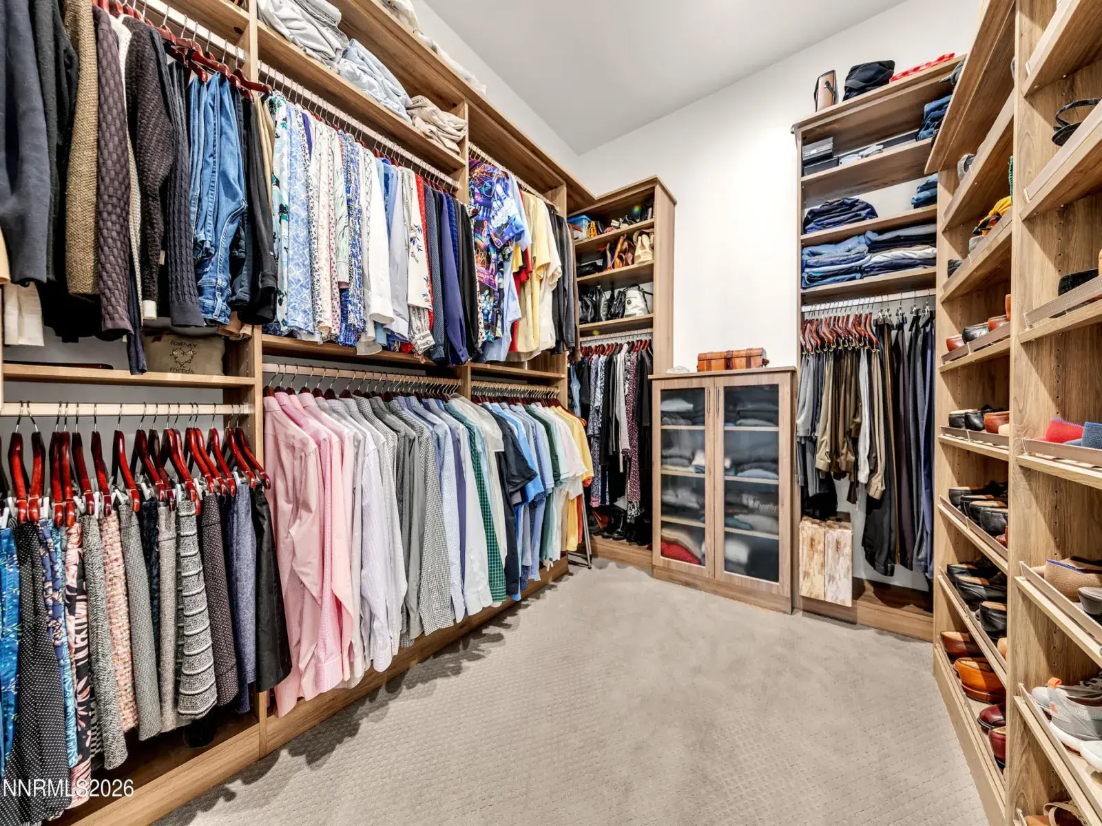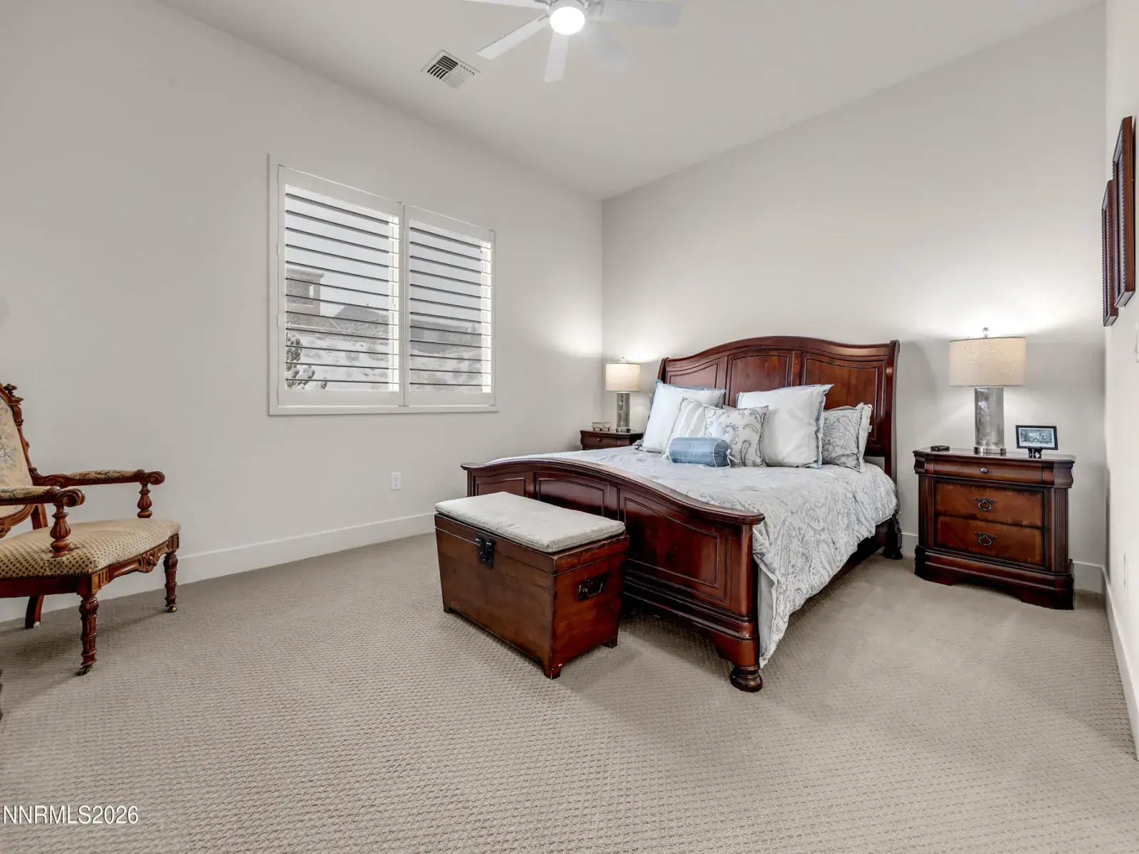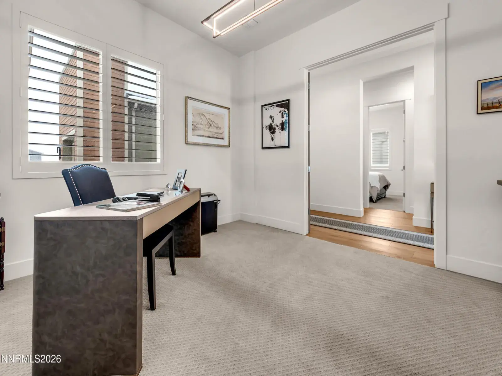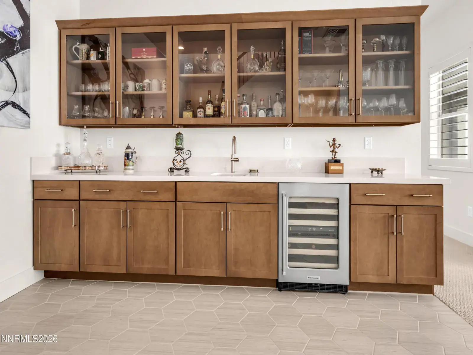 Welcome to 9109 Wild Skies Way, a refined retreat in the gated Cliffs at Somersett, one of Northwest Reno’s most desirable communities. Set against the dramatic meeting of high desert and Sierra Nevada mountains, this home captures sweeping views in every season. Winter brings snow dusted peaks framed perfectly by expansive windows throughout the home. Summer reveals the vibrant desert landscape and glowing Nevada sunsets. Whether you are gathered around the fireplace or enjoying a quiet morning coffee, the scenery is always front and center. Designed with both comfort and entertaining in mind, the open-concept layout flows seamlessly from the great room to a chef’s kitchen equipped for hosting. The formal front room has been professionally converted into a private office that is ideal for remote work or a quiet study. Every bedroom features its own en-suite bath, offering privacy and convenience for family and guests alike. The main level includes 3 spacious bedrooms, highlighted by a primary suite with custom built-ins in the walk in closet. Downstairs, a second primary suite creates a multi-generational setup or a luxurious guest retreat. Throughout the home you will find thoughtful architectural details and upscale finishes, and high end upgrades that reflect true pride of ownership. Located within Somersett’s premier enclave, residents enjoy resort style amenities including a championship golf course, clubhouse, fitness center, pool, walking trails, and easy access to I-80 for a quick drive to downtown Reno or Lake Tahoe. Don’t miss the chance to see this beautiful home for yourself and experience the elevated luxury of the Cliffs.