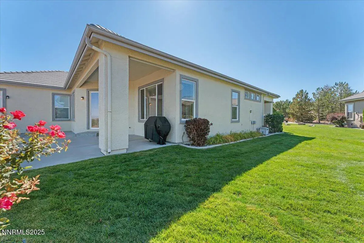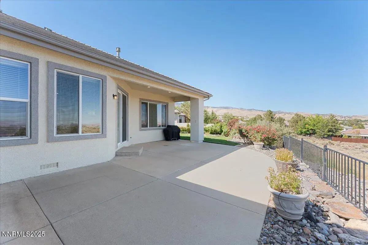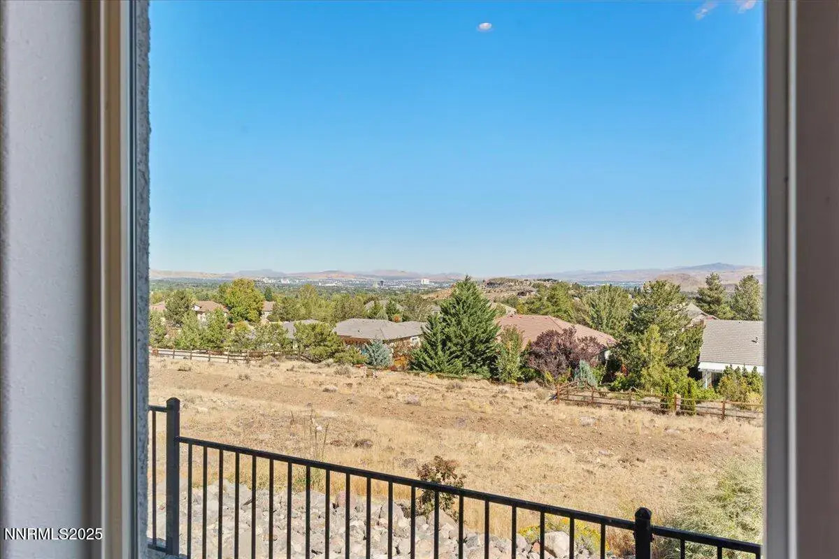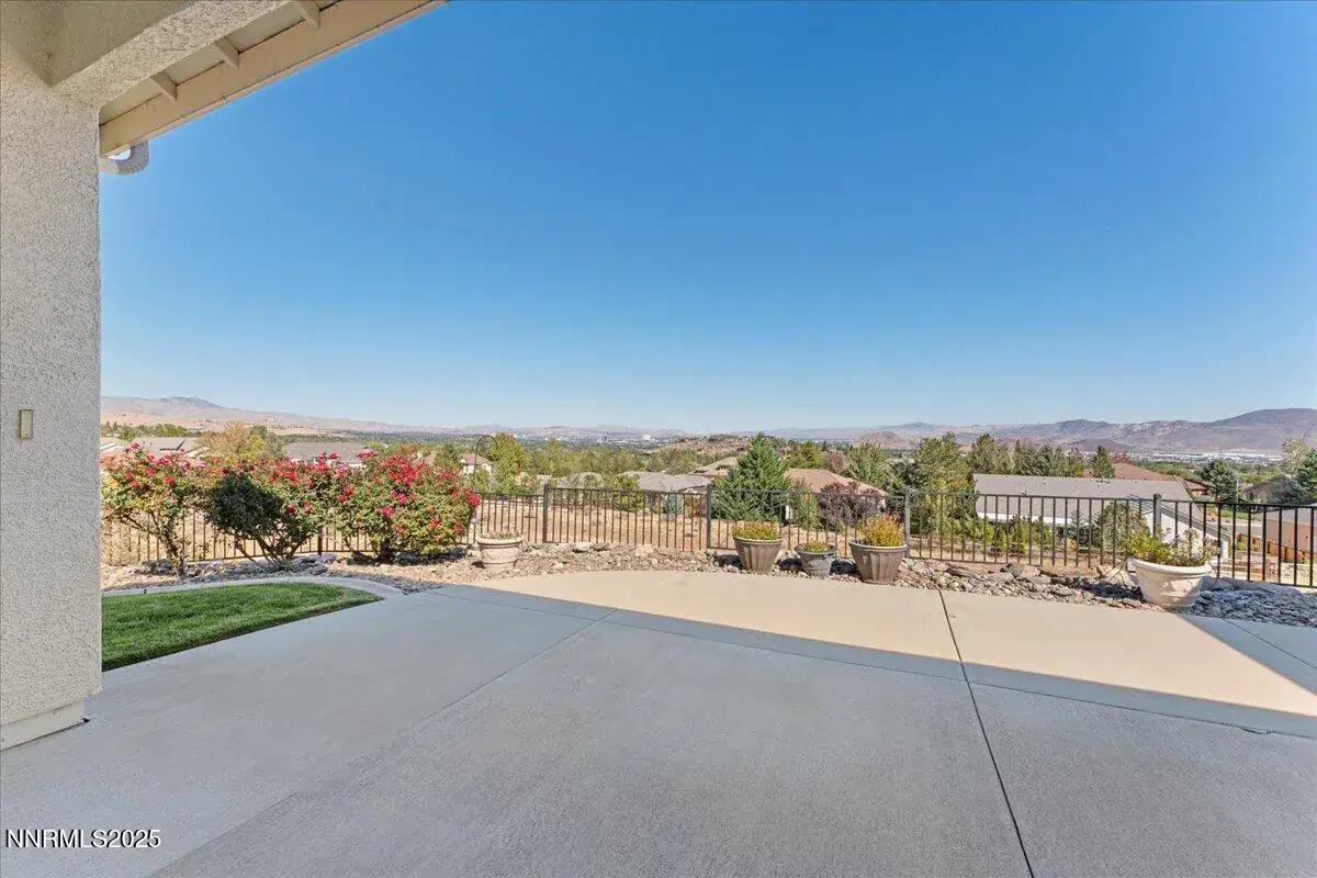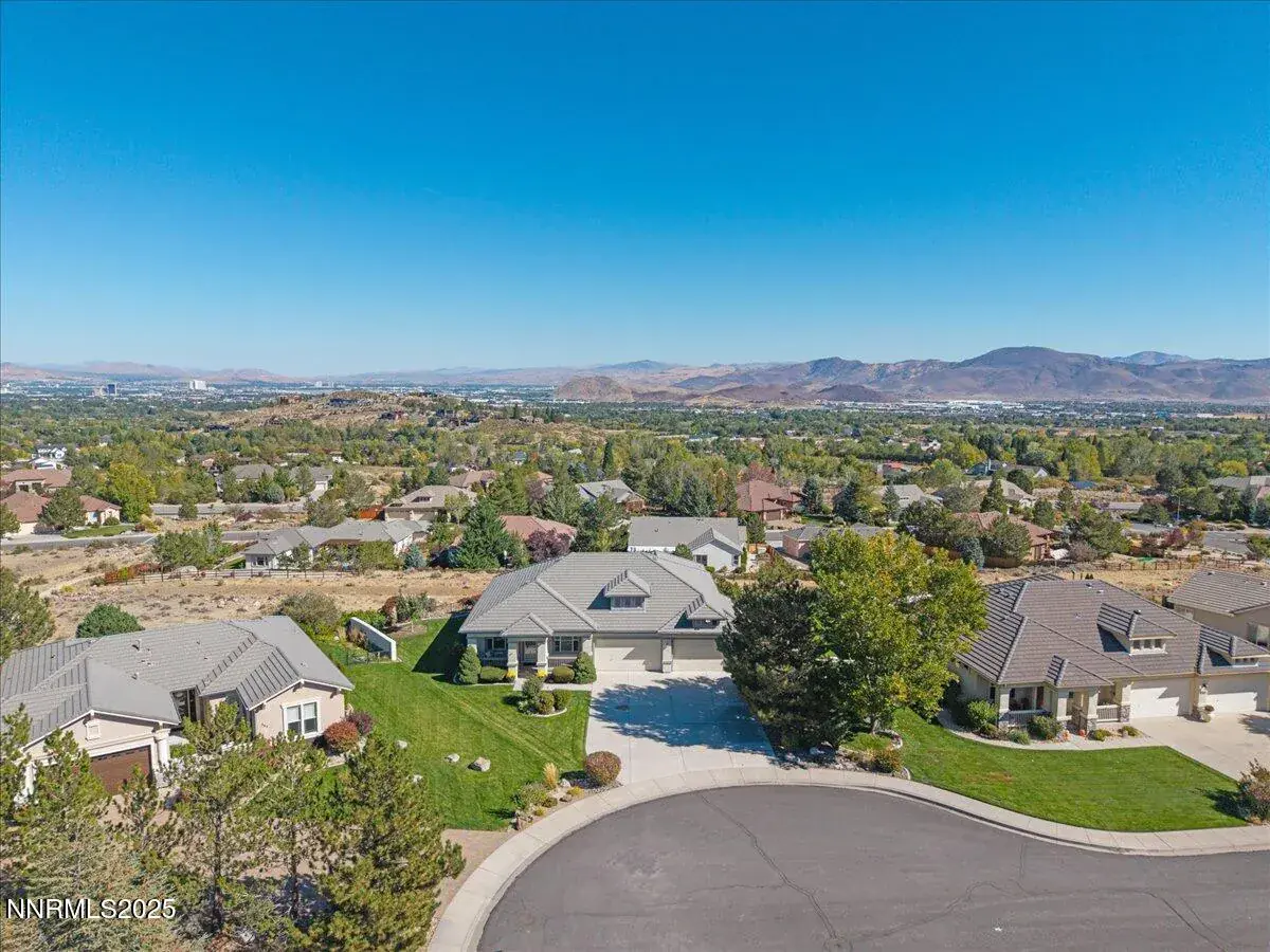 Experience single-level living at its finest in this beautifully situated home with a rare 4-car garage and breathtaking panoramic views of the city, mountains, and valley. Backs up to common area so no rear neighbors. Protected patio includes stubbed in gas for the BBQ (included), and is plumbed for a hot tub. The front is south facing so you can let mother nature do the driveway snow removal if needed! Luscious peach trees and a spot to grow your tomatoes on the east side of the home and roses and grapes on the west. Low maintenance landscaping so you can “lock and leave”. Washer and dryer are included (only a couple of years old), along with the refrigerator in the kitchen. Nestled on a quiet cul-de-sac on a spacious 0.37-acre lot, this property offers the perfect blend of privacy, tranquility, and convenience. Zoned for great schools and just minutes from shopping, golf, Mt. Rose Ski Resort, Lake Tahoe, and Reno-Tahoe International Airport, the location is ideal for both daily living and weekend adventures. Inside, the home has been freshly painted and is ready for your personal touch. Whether you’re relaxing on the back patio enjoying sweeping vistas, or making the most of the oversized garage for your vehicles, gear, or hobbies, this home checks all the boxes. Don’t miss this rare opportunity to own a view property in one of the area’s most desirable neighborhoods. New flooring is being installed and seller home warranty in place!