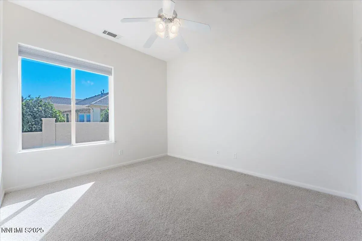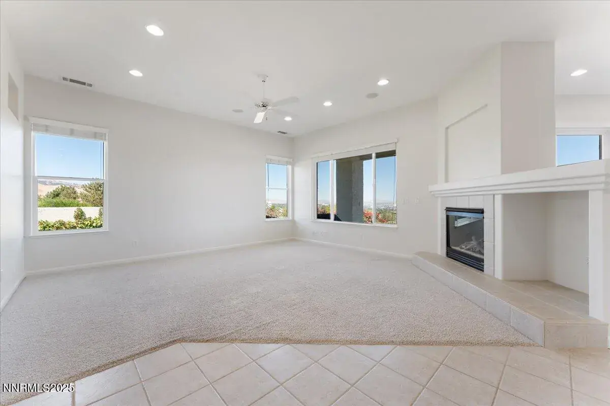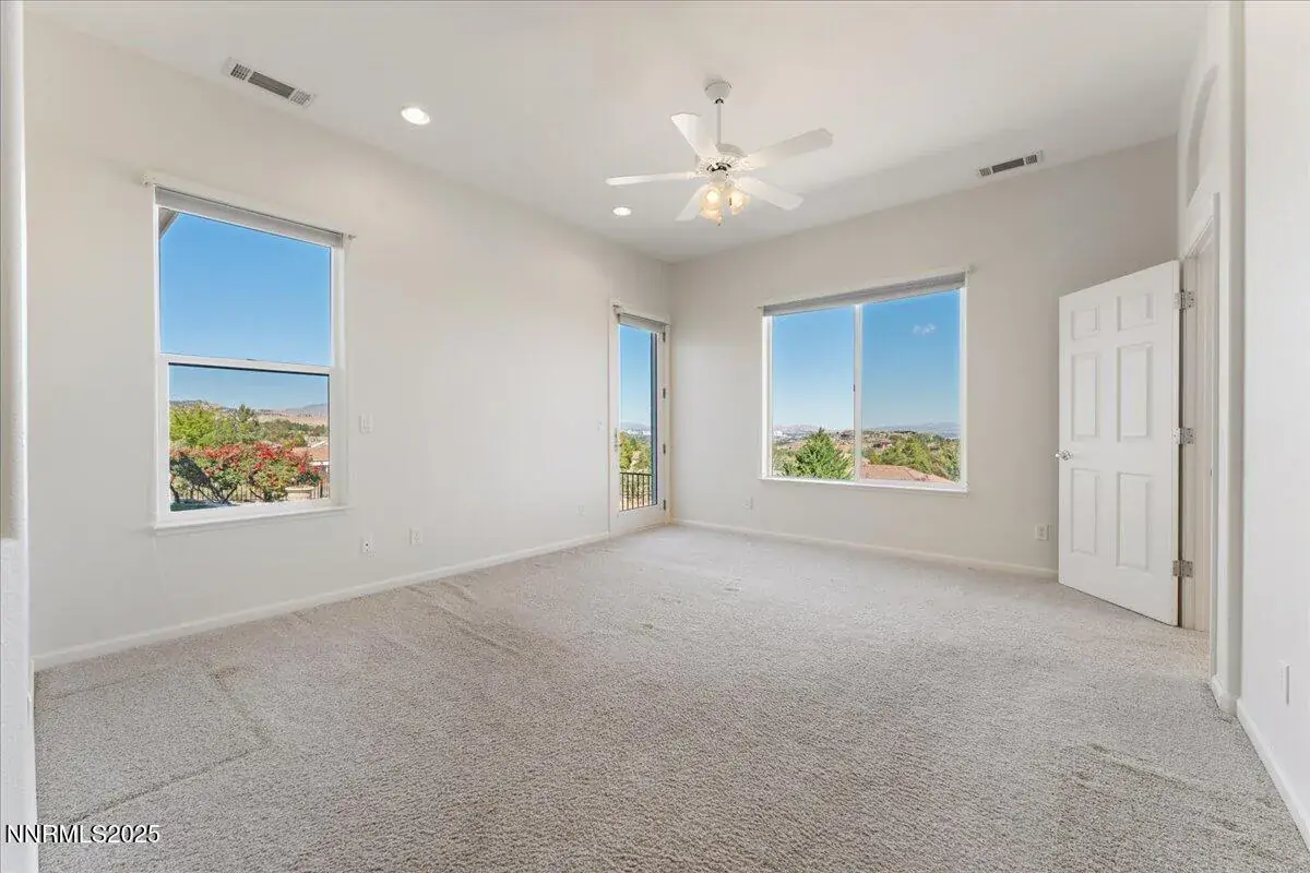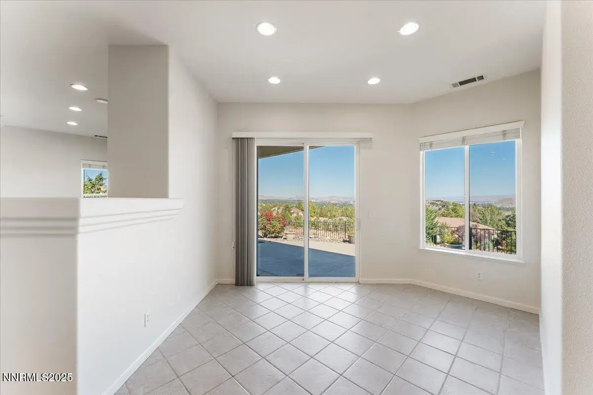 Experience single-level living at its finest in this beautifully situated home with a rare 4-car garage and breathtaking panoramic views of the city, mountains, and valley. Backs up to common area so no rear neighbors. Protected patio includes stubbed in gas for the BBQ (included), and is plumbed for a hot tub. The front is south facing so you can let mother nature do the driveway snow removal if needed! Luscious peach trees and a spot to grow your tomatoes on the east side of the home and roses and grapes on the west. Low maintenance landscaping so you can “lock and leave”. Washer and dryer are included (only a couple of years old), along with the refrigerator in the kitchen. Nestled on a quiet cul-de-sac on a spacious 0.37-acre lot, this property offers the perfect blend of privacy, tranquility, and convenience. Zoned for great schools and just minutes from shopping, golf, Mt. Rose Ski Resort, Lake Tahoe, and Reno-Tahoe International Airport, the location is ideal for both daily living and weekend adventures. Inside, the home has been freshly painted and is ready for your personal touch. Whether you’re relaxing on the back patio enjoying sweeping vistas, or making the most of the oversized garage for your vehicles, gear, or hobbies, this home checks all the boxes. Don’t miss this rare opportunity to own a view property in one of the area’s most desirable neighborhoods. New flooring is being installed and seller home warranty in place!