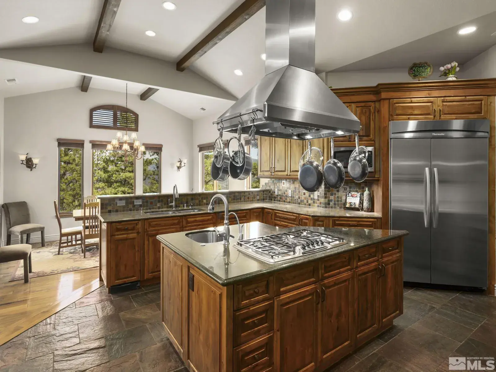 Enjoy the picturesque natural surroundings of Northern Nevada in this beautiful Reno-Tahoe home! This mountain retreat in St James Village offers incredible space indoors and out for everyday living, relaxing and entertaining. This luxury home offers all the bells and whistles of a fine home! 5 Bedrooms 3 Bathrooms 2 Half Baths plus Office, Game Room, Exercise Room & Wine Room – Primary bedroom and office on main level – Radiant in-floor heating on main and secondary levels – 2 Forced Air Condensation Units and Furnaces – Whole House Water Softener Filtration System – 1,396 sq ft oversized 3 car garage with workshop area (Forced air cooling/ heat in workshop) – Security System – Central Vacuum System – Custom lighting, metal stairwell railing, front door sidelights reflecting piney Reno-Tahoe – Walking path of pavers around home, ease of access from front to back – Outdoor Kitchen outside main level living with gas BBQ, fireplace and seating – Covered Patio outside daylight basement – KITCHEN Thermador stainless steel refrigerator/ freezer – Miele double oven – Built in microwave – Thermador 36″ 5-burner gas range top and stainless-steel range hood – Wine /beverage refrigerator and ice machine in kitchen island – Reverse osmosis instant hot water and cold water at kitchen island – Oversized walk-in pantry – Breakfast bar – Dining room views of Washoe Lake – LIVING ROOM Gas fireplace with custom stone hearth – Vaulted ceilings with custom beams – Custom built-in bookshelves – PRIMARY BEDROOM Main level with access to outdoor patio – Gas fireplace and hearth – Large closet with separation on his and her spaces – OFFICE Custom built-in bookshelves/ filing cabinets/ drawers and desks – TWO LAUNDRY ROOMS (one on each floor) – EXERCISE & WINE ROOMS – SECONDARY BEDROOMS 4 bedrooms, 2 full baths – 3 of the 4 bedrooms have private access to outdoor patio – Gas fireplace in one secondary bedroom – GAMEROOM Gas fireplace with custom stone hearth – Custom built-in bookshelves – Bar with sink, beverage refrigerator, custom cabinetry – LOCATION Two gated entrances – 5 MINUTES to HIKING – 15 MINUTES to GOLF – 15 MINUTES to SHOPPING in RENO – 18 MINUTES to MT ROSE SKI – 20 MINUTES to CARSON CITY – 30 MINUTES to north LAKE TAHOE – 25 MINUTES to AIRPORT – Schedule your tour today!