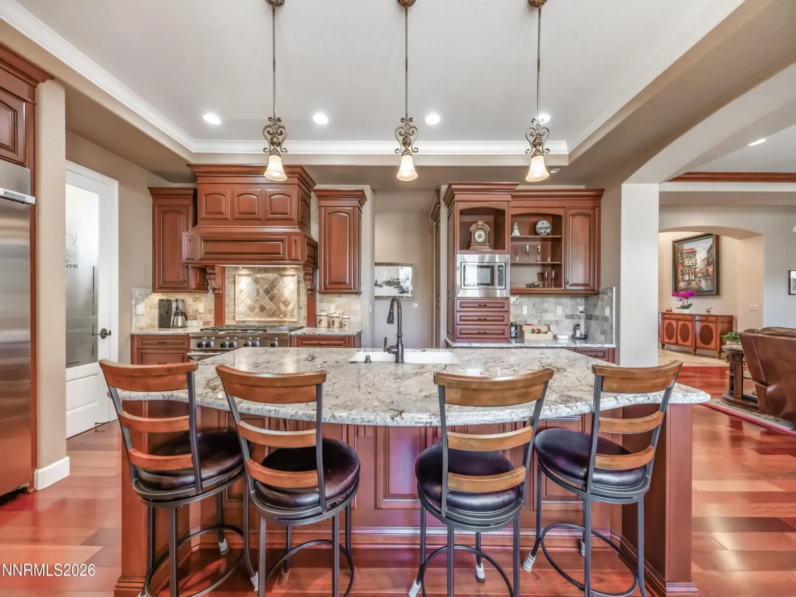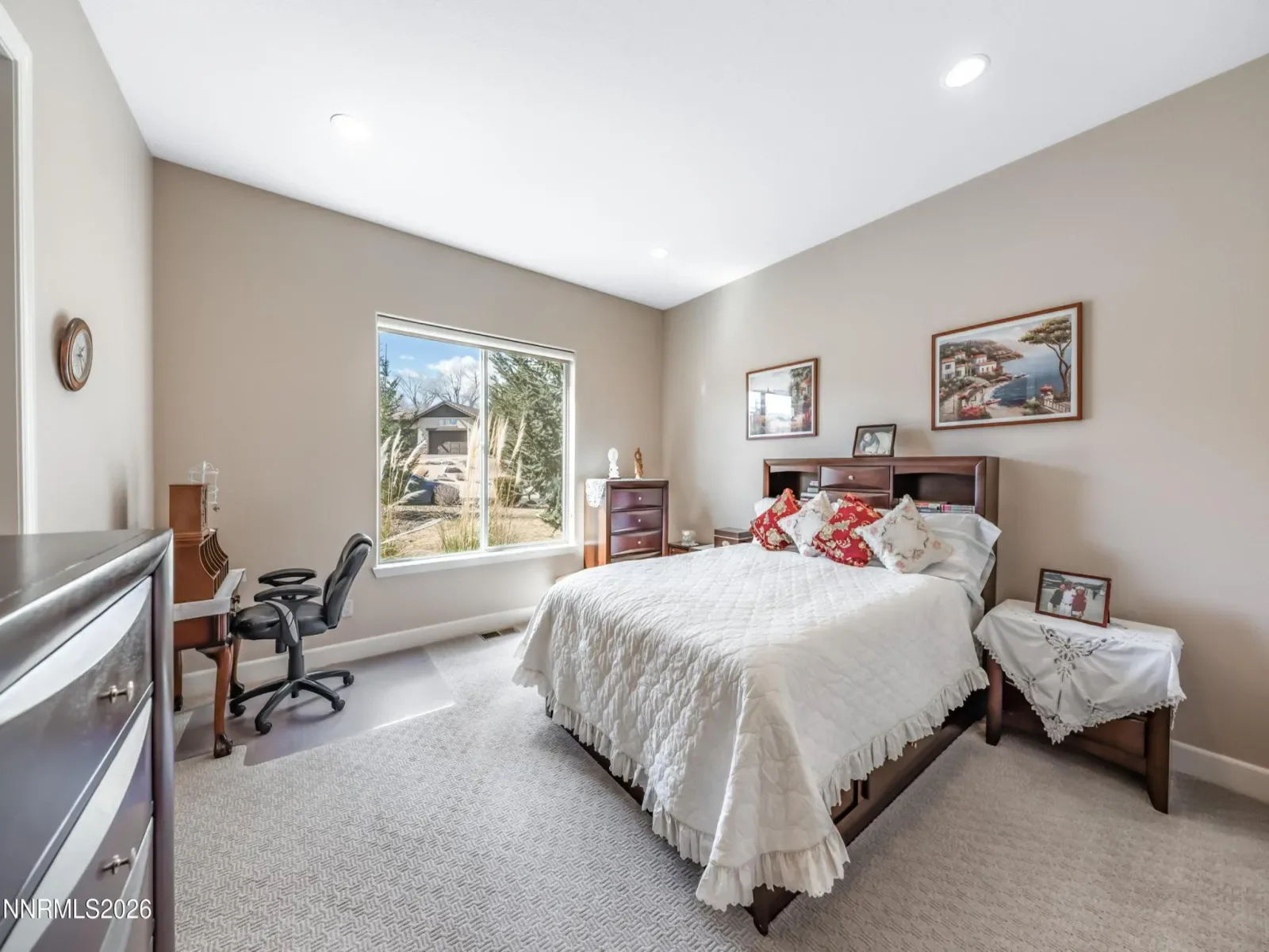 Nestled on a private street with beautiful mountain views, this exceptional custom home offers space, craftsmanship, and thoughtful upgrades throughout. Spanning approximately 3,697 sq ft with 4 bedrooms and 4 bathrooms, the home showcases high quality materials and timeless design, including engineered solid cherry hardwood floors and stunning natural stone accents sourced from Montana and Arizona. The chef’s kitchen is designed for both everyday living and entertaining, featuring custom cherry cabinetry by Unique Design Cabinet Co. in Reno, custom granite countertops with double bullnose edges, stainless steel appliances, and a large walk in pantry. The open layout flows seamlessly into the great room anchored by a striking natural stone fireplace and built in cabinetry, creating a warm and inviting gathering space. The spacious primary suite is a true retreat with a large spa style bathroom featuring custom tile work, an oversized shower, and expansive his and hers walk in closets with custom cabinetry by Closet Masters of Nevada. Additional highlights include a heavy duty floor bolted safe in the office closet, three zone HVAC system with a separate thermostat for the guest room, and a pier and beam floor system with a large illuminated crawl space. Quality construction continues throughout with custom red oak front doors from Oregon, professionally finished white pine and cherry woodwork with five coats of finish, an enclosed mechanical area in the garage, and a massive 1,160 sq ft garage with durable epoxy flooring. The outdoor space is just as impressive, featuring a paver driveway, patio, and walkways, extensive landscaping on an automated drip system, 10 fruit trees, grapes, raised vegetable beds, and a beautiful Annabella water feature on the rear lawn. The front landscaping features Johnny and Josey bronze sculpture, and exterior lighting on automatic timers enhances the property’s curb appeal. Additional improvements include motion sensor lighting in the mudroom, and a brand new vapor barrier installed in the crawl space in November 2025. This thoughtfully designed property blends privacy, craftsmanship, and functional upgrades in one of the area’s most desirable settings. *4.99 percent owner financing available. Please call the listing agent for more details.*