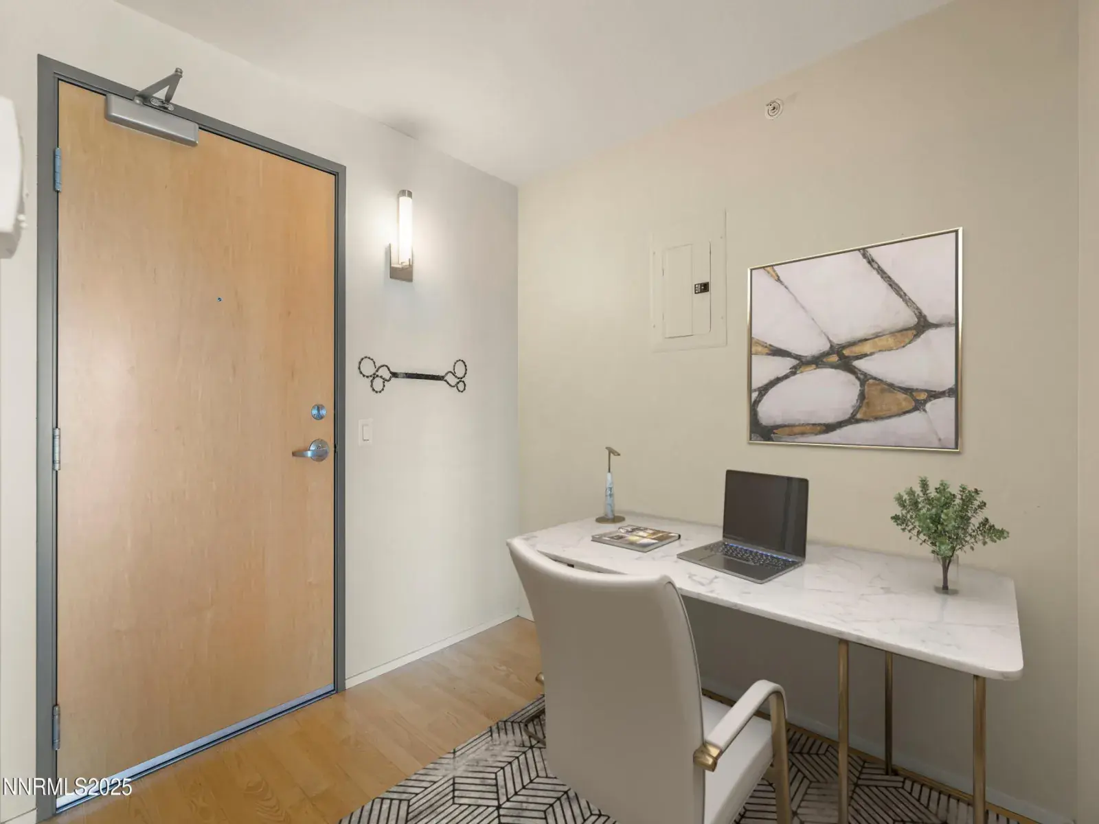 Embrace the harmonious blend of contemporary living and urban charm at The Montage, where sophistication meets serene living spaces. This convertible/studio unit offers that true city experience, with the twinkling casino lights and the spectacular sunrises that adorn the Reno skyline. Designed with the discerning resident in mind, this convertible/studio gem on the 10th floor offers a open concept living area ideal for first-time homebuyers, retirees, or those seeking a part-time urban retreat. Residents are welcomed into a Zen-inspired lobby that exudes tranquility, staffed with attentive 24-hour desk attendants ensuring your comfort and security. Outside the pool terrace rivals any resort, featuring two hot tubs, five gas grills, a spacious lap pool (pool deck is under construction, but similar features will be on the new deck) and a clubhouse perfect for hosting memorable events. Fitness enthusiasts will appreciate the expansive 24/7 gym, the largest among the city’s high-rises. Additional conveniences include bike storage, personal storage units, and secure parking with a dedicated space. This urban sanctuary offers a variety of communal spaces, including an owner’s lounge, library, and a garden deck where you can enjoy the downtown views and festive fireworks displays. The Montage’s prime location places you just blocks away from cultural hotspots, the Truckee Riverwalk, and Reno’s vibrant Midtown district, with its eclectic mix of dining, shopping, and entertainment. Experience a lifestyle of luxury and convenience at The Montage where your new home awaits amidst the energy and excitement of downtown Reno. (some photos are digitally staged)