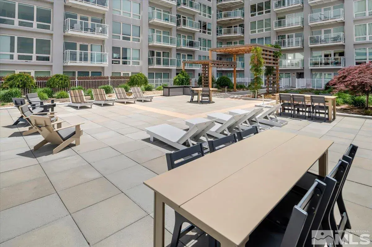 The Montage – Downtown Reno’s premier high-rise condominium property. This east-facing 6th floor unit provides convenient access to both the Pool and Garden Decks, yet ideally located opposite elevator traffic. This is a 967 square foot one-bedroom flex unit with a separate area off the entry, sized perfectly for your at-home working needs or overnight guests. In addition to a front entry closet, there are two, not just one, large walk-in closets. Improvements include a full granite kitchen, backsplash and designer lighting fixtures. 24/7 staffed front desk, building security and maintenance, a well-equipped fitness center, owners’ lounge, bicycle storage room, and designated underground parking, provide luxurious easy and safe living for all ages. Your patience will be well-awarded with the completion of the 6th floor Pool Deck architecturally-designed replacement installations currently slated for late 2025. Please note that some photos are virtually staged. This unit is delivered unfurnished so no additional move-out requirements or disassembly of anything undesirable.