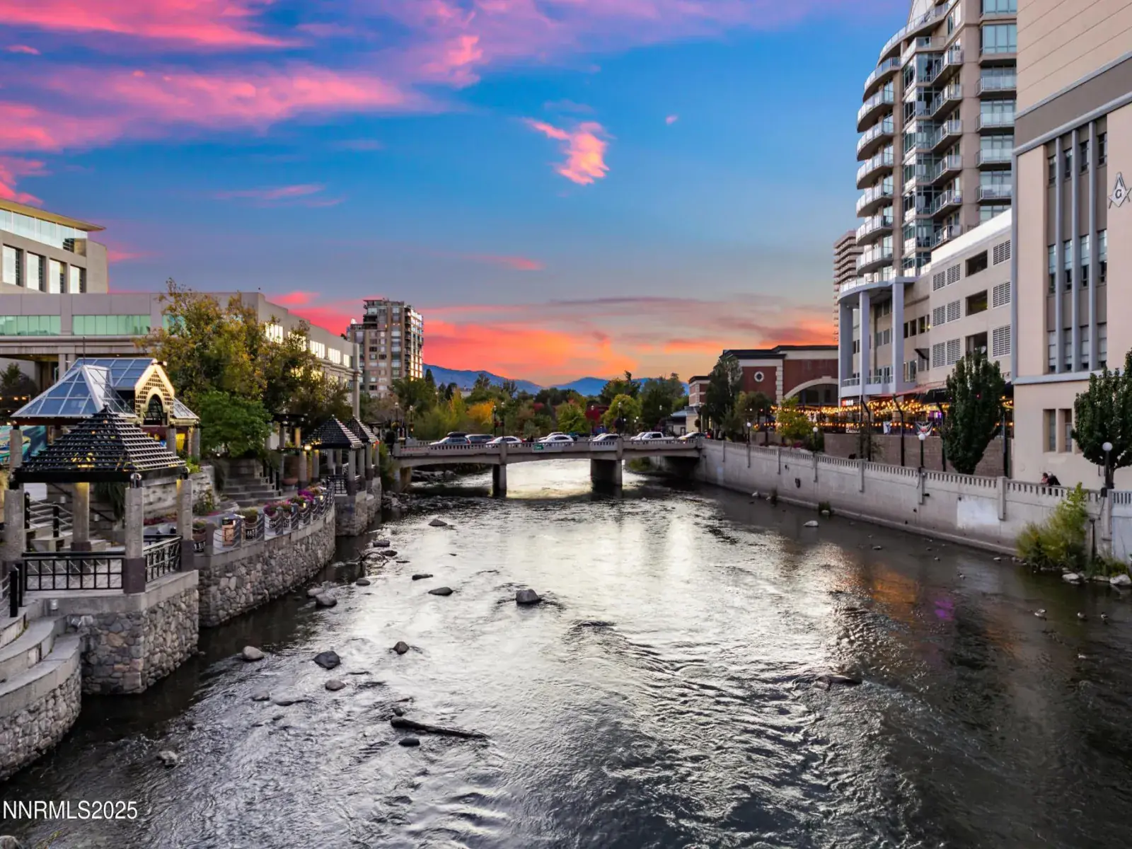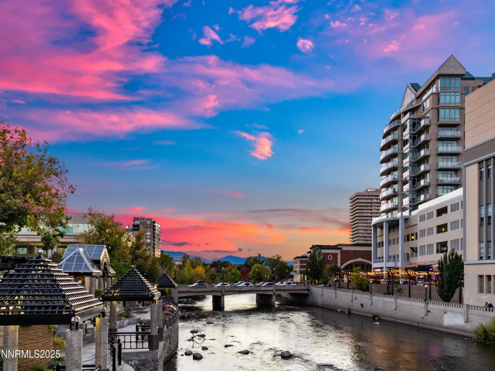 Experience refined living at The Palladio—Reno’s premier luxury high-rise set along the scenic Truckee River. Perfectly positioned in the heart of downtown, this elegant 2-bedroom, 2-bath residence captures sweeping views of the river, city lights, and surrounding mountains through its expansive floor-to-ceiling windows. An open-concept layout creates effortless flow between the modern kitchen, great room, and generous dining area, ideal for both entertaining and everyday comfort. Step out onto your private terrace to enjoy sunrise reflections over the water or vibrant city evenings below. Sophisticated finishes, abundant natural light, and a seamless indoor-outdoor connection define the residence’s timeless appeal. The Palladio offers resort-style amenities, including a riverfront pool and spa, secure parking, and on-site retail and dining—all within walking distance of Reno’s best restaurants, galleries, and entertainment. Whether a full-time home or a lock-and-leave retreat, Unit 601 embodies the perfect balance of luxury, lifestyle, and location in the heart of the city.