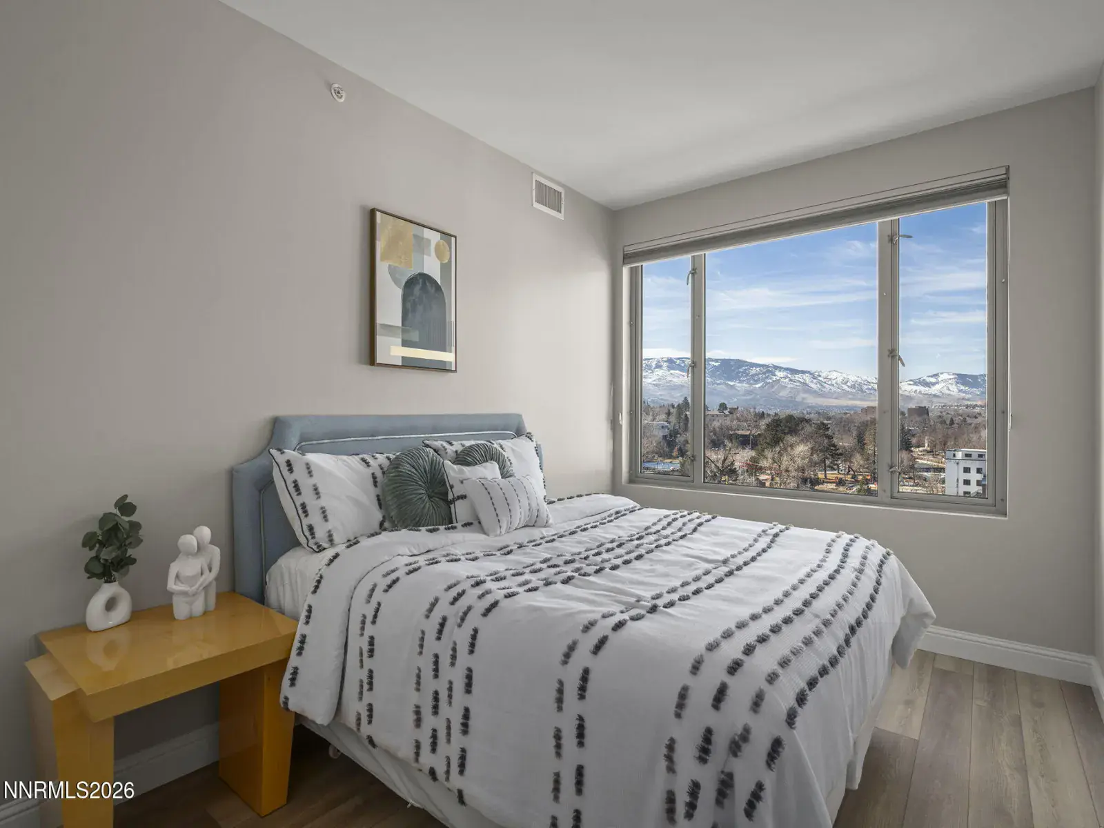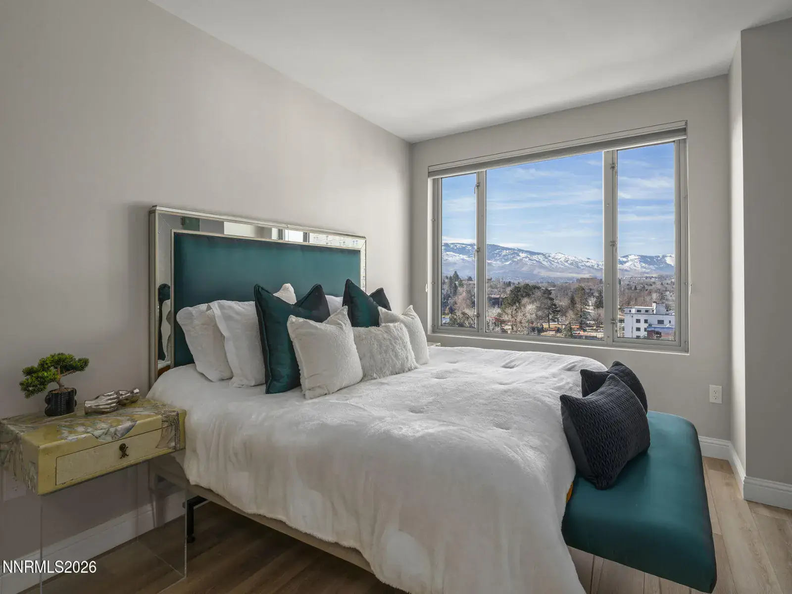 Welcome to your slice of urban luxury at 803/50 N Sierra St., nestled in the heart of Reno, NV. This exquisitely updated 2-bedroom, 2-bathroom unit is the epitome of modern living for discerning buyers, from downsizing luxury-seekers to urban professionals, or those in search of a stunning second home in Nevada. Recently revitalized with sophistication, the space boasts new luxury vinyl plank floors that lay the foundation for a contemporary aesthetic. The kitchen shines with new quartz countertops, complemented by a full suite of all-new LG appliances that promise reliability and style. Indulge in the primary bathroom’s transformation, featuring a brand-new shower and sleek quartz countertops. The thoughtful removal of walls opens up the living space, creating a versatile area that can effortlessly transition into a den or home office. Storage concerns disappear with the inclusion of a parking space and storage unit conveniently located near the elevator. Custom walk-in closets in both the primary and guest bedrooms provide ample space for personal belongings. The pièce de résistance? Western views of the Sierra mountains, Truckee River, and Wingfield Park that paint a backdrop of serene beauty, elevating every moment spent in this luxurious abode. Residents enjoy a tucked-away infinity pool that grants a secluded overlook of the Riverwalk, and a year-round hot tub to unwind after a day’s work or play. Living here means being at the epicenter of culture and convenience, with fine dining, trendy bars, engaging performing arts, and the picturesque Truckee River just steps away.