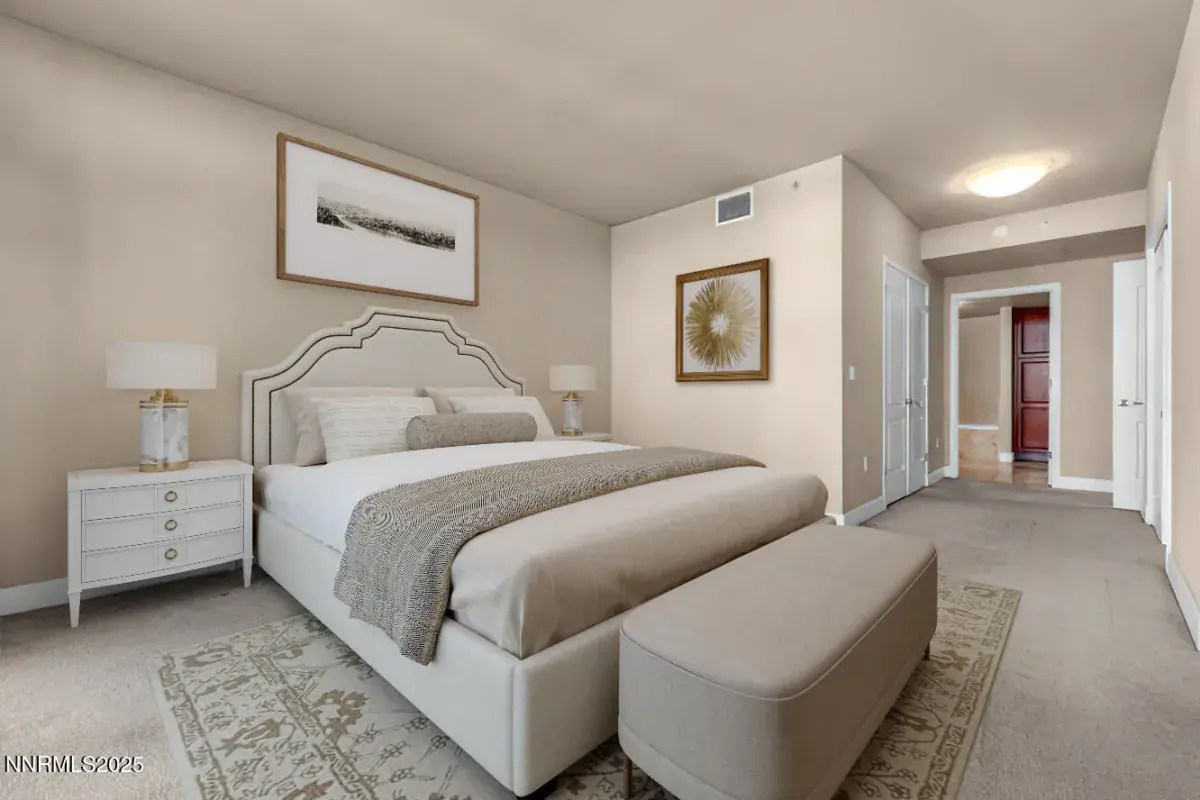 Discover the perfect blend of comfort and convenience in this stunning Palladio condo, located right in the heart of Reno on the picturesque Truckee River. This spacious unit offers 2 beds, 2 baths with 1,966 sq. ft. of living space, ideal for both relaxation and entertaining – the 3rd bedroom was converted to a large dining room. The inviting great room includes built – in bookshelves and a built in bar perfect for hosting friends and family. The home is a corner unit with both North and Westerly views. There are three patios for your outdoor pleasure. The formal dining room boasts a wall of built-ins providing ample space for all your dining essentials, china and decorative items. Enjoy the convenience of 2 dedicated parking spaces along with extra storage for your belongings. This condo is not just a home; its a lifestyle offering easy access to downtown amenities, dining, City events and outdoor activities. This home has been recently painted and carpeted. Don’t miss you chance to own a piece of Reno paradise! Several photos including the living room & two bedrooms have been virtually staged.