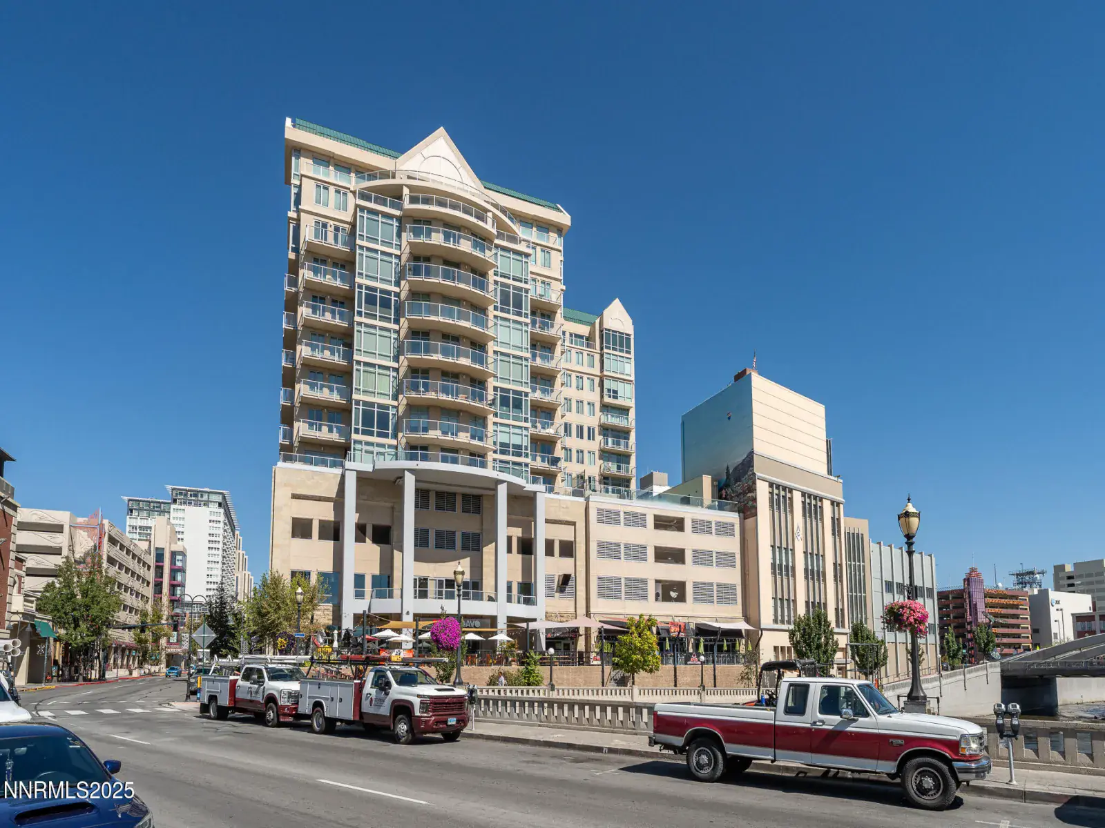 Experience upscale urban living in this exquisite 2-bedroom, 2-bath condo at The Palladio, ideally positioned to capture breathtaking south-facing views of the Truckee River, the pool and spa deck, and the expansive Nevada sky and mountains, all from the comfort of your home and private balcony. This spacious residence features an open-concept living area with floor-to-ceiling windows that capture the stunning views and provide abundance of natural light. The large, modern kitchen boasts granite countertops, stainless steel appliances, maple cabinetry, and a tucked-away laundry area with stacked washer/dryer. Just off the living room, a versatile secondary bedroom with dual entrances offers the ideal setup for a guest room, office, or den. It includes its own direct access to the balcony, and is just across from one of the full bathrooms. The primary suite features a large bedroom, sizable walk-in closet, and a spa-inspired bathroom with dual vanities, jetted soaking tub, and separate, tiled shower. Upgrades include brand new carpet and interior paint throughout, as well as a new, custom barn door. Be sure to check out the immersive 3D tour! Enjoy a low-maintenance lifestyle with HOA dues that cover sewer, water, trash, and gas service, along with access to the fantastic pool and spa! The unit also includes one assigned, deeded parking space in the secure building garage and 2 storage lockers. Built in 2006, The Palladio offers modern design, secure living, and unbeatable access to the best of downtown Reno: local dining, cafés, art galleries, and music venues are all just steps away. This exceptional home is priced to sell and won’t last long – schedule your private tour today!