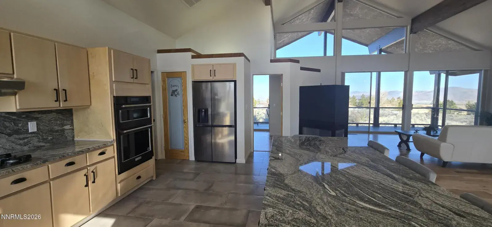 Experience unparalleled 360° city and mountain views from every angle of this stunning single-story, custom-built South Reno residence. Perfectly situated on a premium 2.88-acre lot bordering BLM land, this property offers exceptional privacy and a rare sense of serenity. Inside, you’ll find vaulted ceilings, expansive picture windows, and an open-concept great room that fill the home with natural light. A complete modern remodel showcases refined finishes including hardwood and stone flooring, a sleek designer kitchen with striking granite slab counters and backsplash, stainless steel appliances, and exquisite tile work. The spacious three-car garage features an oversized door and workshop area. Step outside to enjoy sweeping city views from the covered rear deck or take in the mountain vistas from the inviting front porch—perfect for relaxing or entertaining. Other highlights include a luxurious primary suite with a jetted soaking tub and walk-in rain shower, a stucco exterior with a concrete tile roof, ample space for RVs, boats, and future outbuildings, and no HOA. This quiet yet convenient location is close to Thomas Creek Park, schools (Hunsberger Elementary, Herz Middle, Sage Ridge), shopping, dining, and only an 18-minute drive to Mt. Rose Ski Resort.