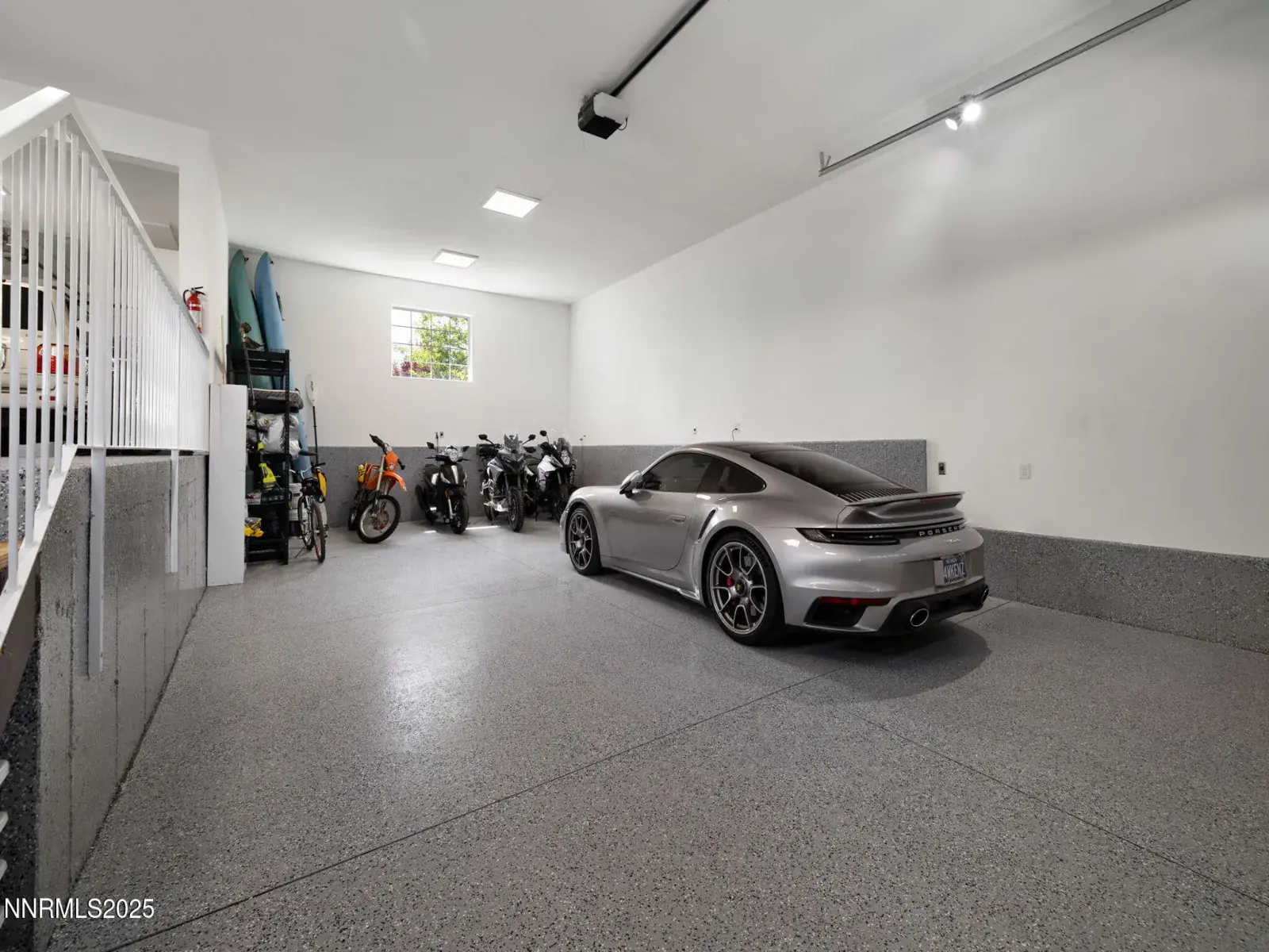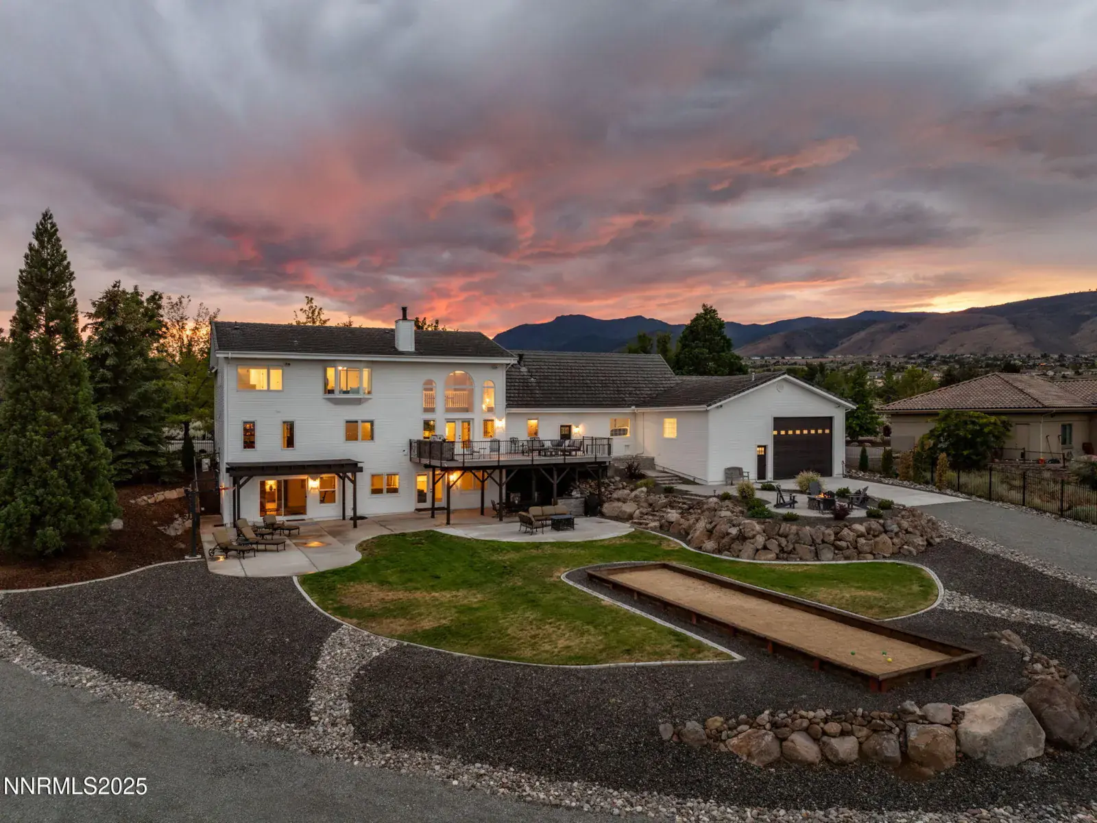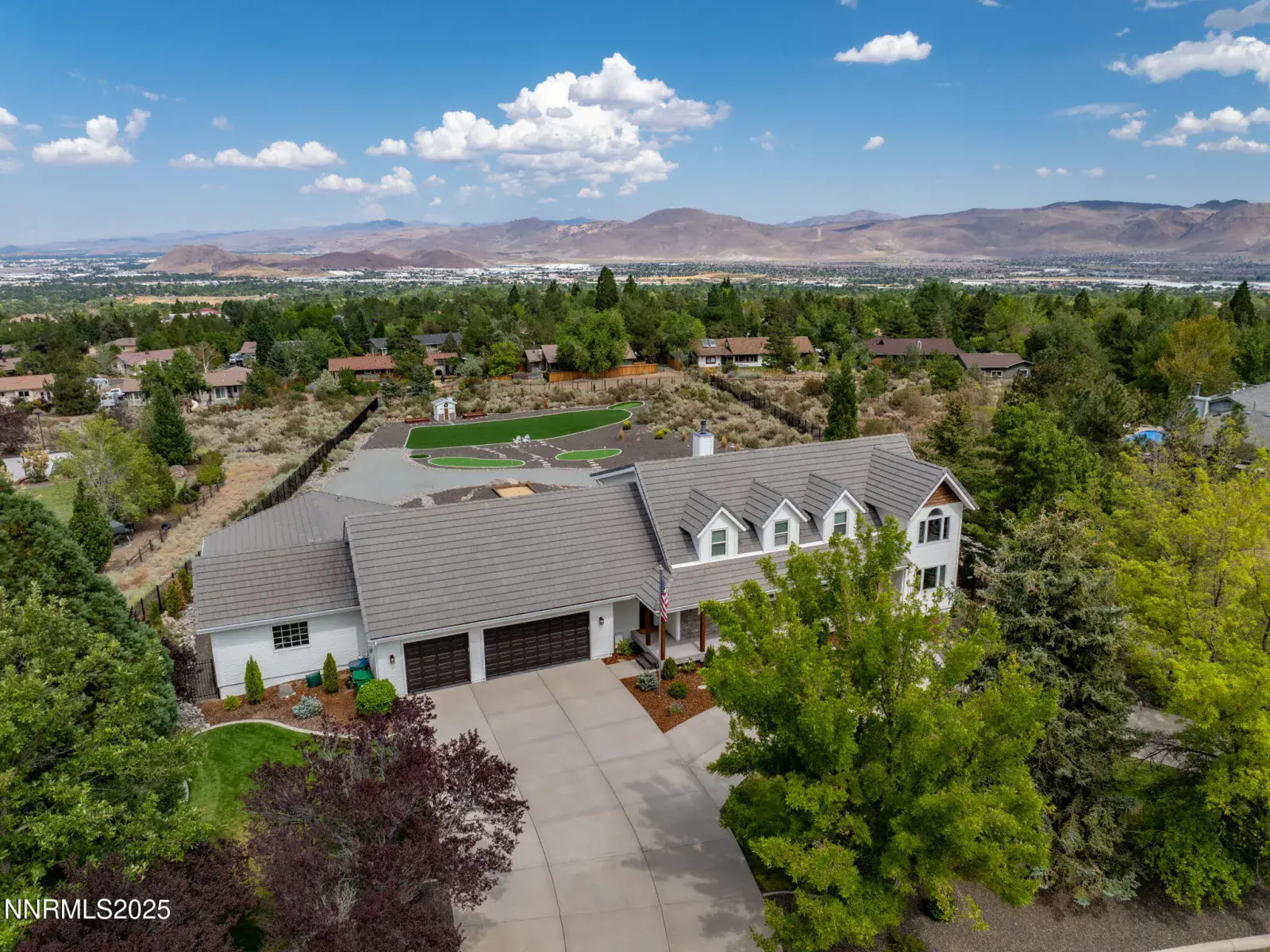 Set on 1.59 beautiful acres in the heart of South Reno, this exceptional estate captures views of the surrounding mountains and downtown skyline while offering a rare sense of privacy and scale. Recently renovated, the residence presents a seamless balance of architectural elegance, elevated comfort, and highly functional design that incorporates an in-law quarters. A defining feature of the property is the expansive 1,895-square-foot garage—thoughtfully designed for the collectors or enthusiasts. Finished with epoxy flooring, 220V power, EV charging, attic storage, a utility sink, and a dedicated RV bay measuring 38′ deep by 19′ wide with a 12′-high door and gravel drive access, this space offers capability without compromise. The lower level offers remarkable versatility, designed as an extension of the home. This level includes a wine and whiskey cellar, secondary family room, full second kitchen, and private in-law quarters with separate entry, full bath, and its own washer and dryer—ideal for multigenerational living or long-term guests. The grounds are equally compelling, curated for both entertaining and everyday enjoyment. Two full outdoor kitchens anchor multiple gathering spaces alongside a firepit lounge and bocce court, while landscaped paths invite evening strolls through the property. Additional amenities include a basketball hoop, chipping greens, raised garden beds, a garden shed, and discreet storage areas—each element thoughtfully integrated into the estate. A wrap-around U-shaped driveway enhances both arrival and functionality. Interiors are defined by luxury finishes and an abundance of natural light. The grand entry introduces expansive living spaces framed by panoramic windows and three fireplaces, creating a warm yet sophisticated atmosphere. The primary suite serves as a private retreat, complete with a spa-inspired bath featuring heated floors. Every aspect of this estate has been intentionally considered to support a refined lifestyle—whether hosting with ease, accommodating prized vehicles, or simply enjoying the tranquility of a private setting.