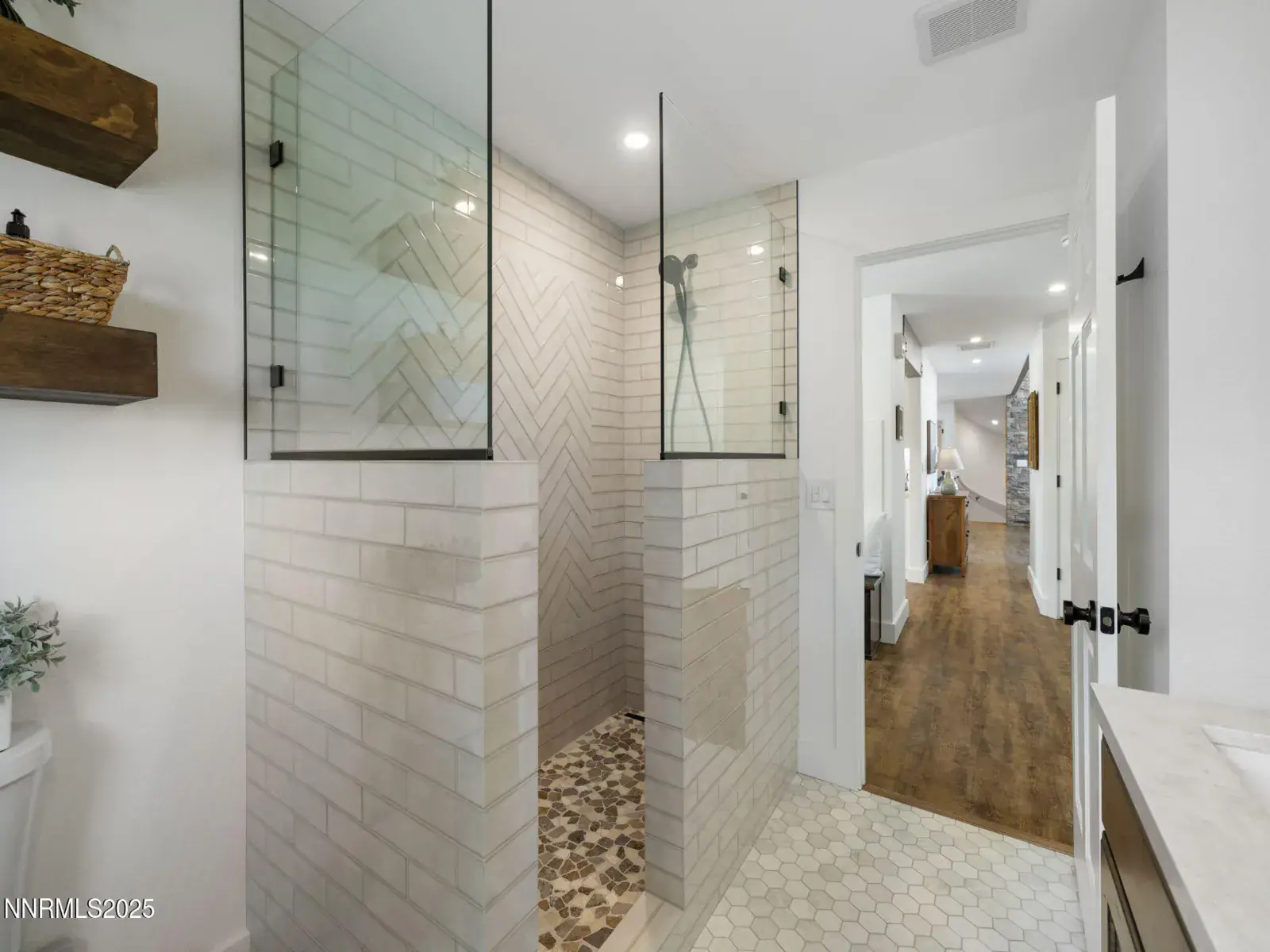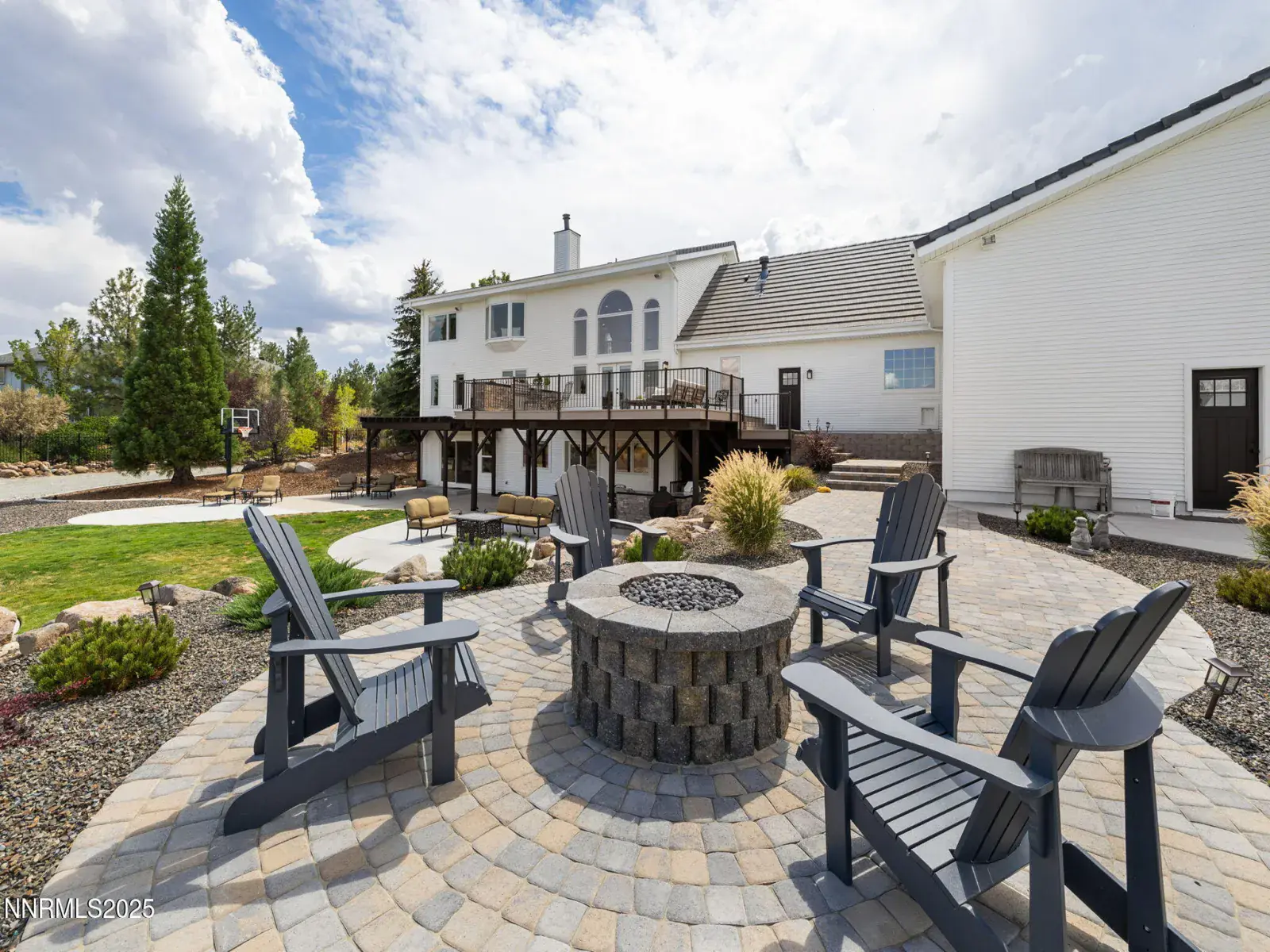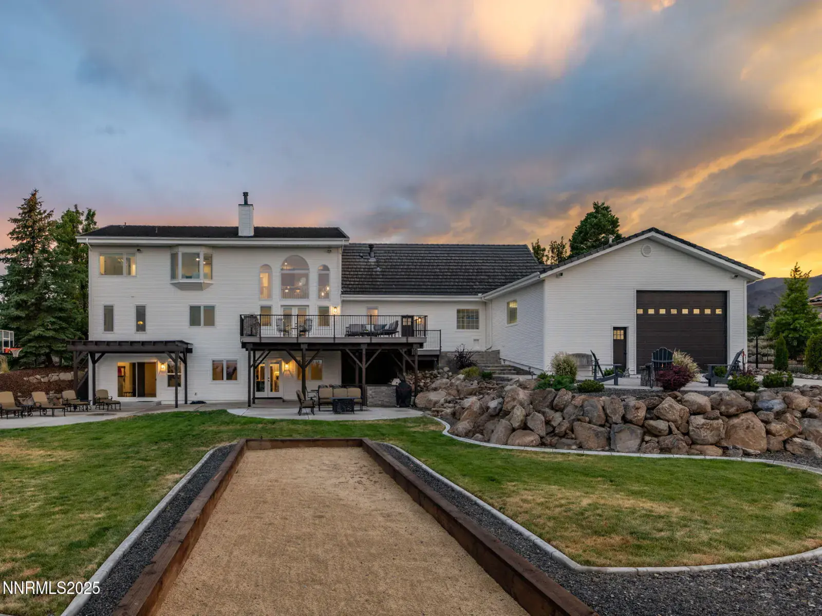 Set on 1.59 beautiful acres in the heart of South Reno, this exceptional estate captures views of the surrounding mountains and downtown skyline while offering a rare sense of privacy and scale. Recently renovated, the residence presents a seamless balance of architectural elegance, elevated comfort, and highly functional design that incorporates an in-law quarters. A defining feature of the property is the expansive 1,895-square-foot garage—thoughtfully designed for the collectors or enthusiasts. Finished with epoxy flooring, 220V power, EV charging, attic storage, a utility sink, and a dedicated RV bay measuring 38′ deep by 19′ wide with a 12′-high door and gravel drive access, this space offers capability without compromise. The lower level offers remarkable versatility, designed as an extension of the home. This level includes a wine and whiskey cellar, secondary family room, full second kitchen, and private in-law quarters with separate entry, full bath, and its own washer and dryer—ideal for multigenerational living or long-term guests. The grounds are equally compelling, curated for both entertaining and everyday enjoyment. Two full outdoor kitchens anchor multiple gathering spaces alongside a firepit lounge and bocce court, while landscaped paths invite evening strolls through the property. Additional amenities include a basketball hoop, chipping greens, raised garden beds, a garden shed, and discreet storage areas—each element thoughtfully integrated into the estate. A wrap-around U-shaped driveway enhances both arrival and functionality. Interiors are defined by luxury finishes and an abundance of natural light. The grand entry introduces expansive living spaces framed by panoramic windows and three fireplaces, creating a warm yet sophisticated atmosphere. The primary suite serves as a private retreat, complete with a spa-inspired bath featuring heated floors. Every aspect of this estate has been intentionally considered to support a refined lifestyle—whether hosting with ease, accommodating prized vehicles, or simply enjoying the tranquility of a private setting.