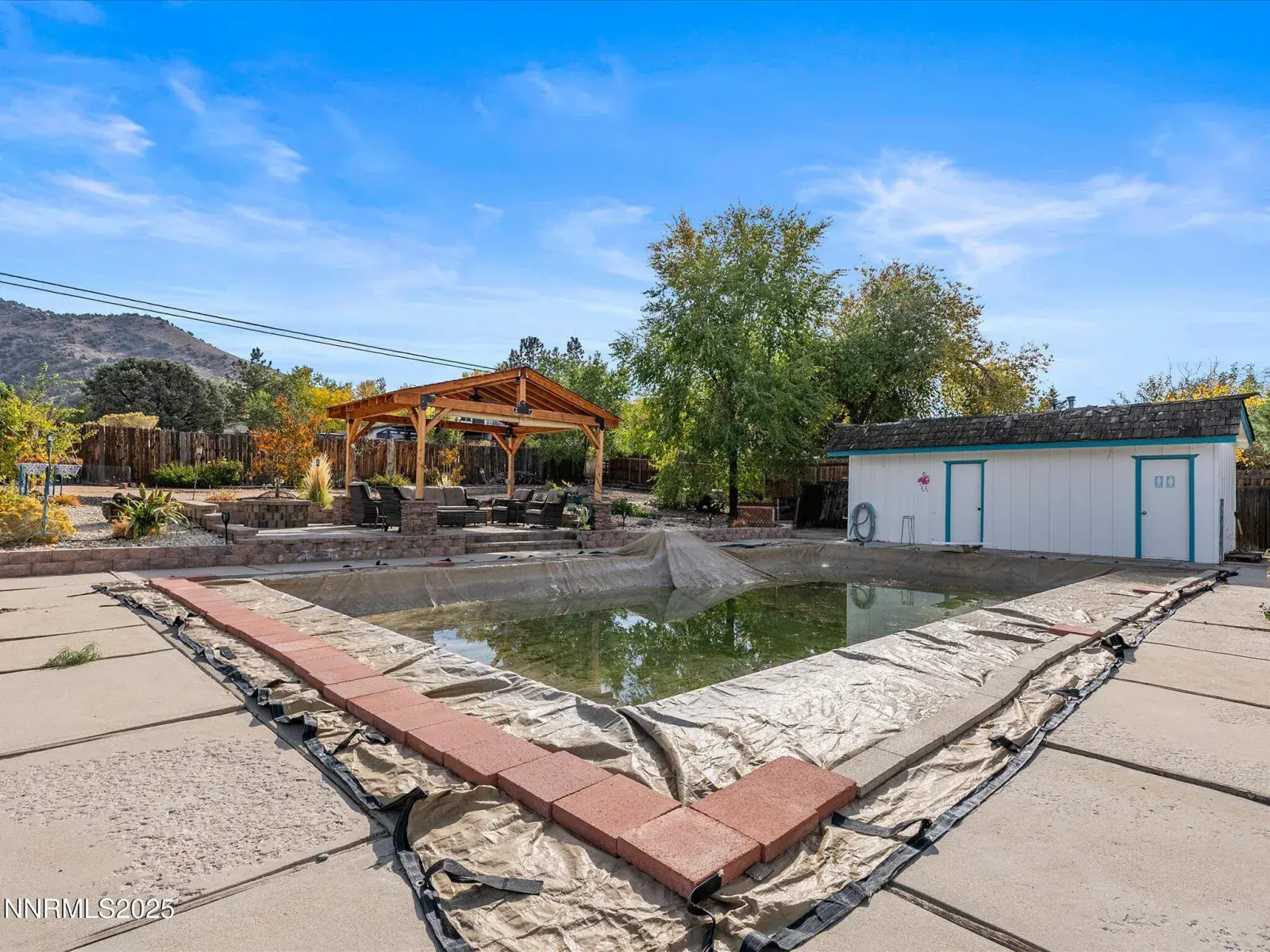 Discover peaceful, private living in one of the most sought-after pockets of Virginia Foothills! This single-story retreat sits on over half an acre with no HOA and a backyard designed for true Northern Nevada living; relaxation, recreation, entertaining, and room to breathe. Inside, you’ll find 2,152 sq ft of comfortable living space, PLUS a professionally constructed 350 sq ft four-season sunroom addition for a total of 2,502 square feet. The home offers warm natural light, granite kitchen counters, double oven, newer refrigerator, and laminate flooring through the main living areas. The primary suite includes a jetted soaking tub, walk-in shower, walk-in closet, private access to the backyard, and lovely city light views. Step outside to your own personal resort: a 20×40 fiberglass pool, hot tub, fire pit, gazebo lounge area, paver patio, and drip-system landscaping. The layout is ideal for gathering—whether it’s summer pool parties, cozy evening hangouts by the fire, or large outdoor celebrations under the Nevada sky. A detached pool house with two bathrooms offers ultimate convenience for guests, and there’s plenty of space for RV parking, toys, and trailers. Recent improvements include a 2022 electrical panel, Mitsubishi heat pump, newer flooring, and a 2016 roof on the main home. Septic system has been recently serviced and well-maintained. A rare blend of privacy, views, and resort-style entertaining just minutes from city conveniences. *Seller-provided photos of the pool and patio taken summer 2025