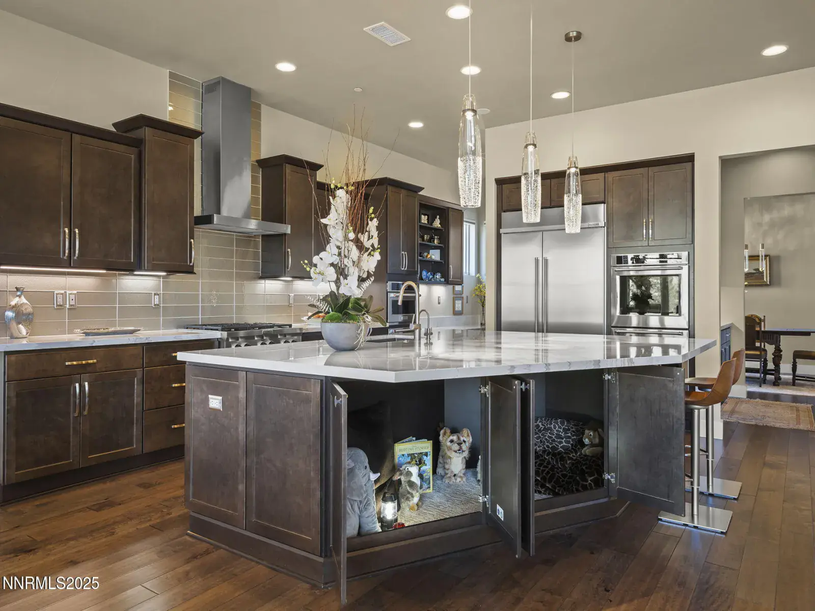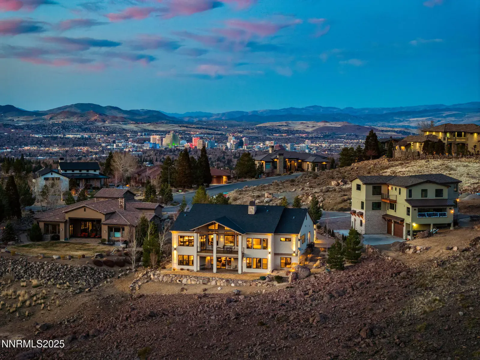 A masterpiece of multigenerational NEW luxury in the custom home community of serene Caughlin Ranch. Step into a residence where every detail has been thoughtfully curated and little expense spared. Tucked in a quiet cul-de-sac in one of Upper Caughlin Ranch’s most coveted neighborhoods, this home is truly two-in-one—crafted for multigenerational living while delivering the highest level of luxury, technology, and comfort., The lower level functions as its own private home. It features a full kitchen suite (minus oven/range), three bedrooms, a bunk room, three bathrooms, its own laundry room, separate HVAC system, and private entrance—an ideal layout for extended family, guests, or live-in support. Bonus features include a finished mechanical/storage room with 160 sq ft of usable space and an expansive crawl space reaching up to 8 ft tall for extra storage. Upstairs, the heart of the main level is a chef’s dream kitchen. A striking 94″ x 123″ island offers both form and function—with a hidden play nook underneath for kids or grandkids. Top-tier KitchenAid appliances include dual ovens, a deluxe built-in fridge, warming drawer, six-burner gas range with Tephy hood, and a pebble ice machine. A large specialty sink with a touchless faucet, under-cabinet lighting, built-in workspace, and full butler’s pantry with cabinetry, sink, and disposal ensure this kitchen is as practical as it is beautiful. Adjacent to the living space, the primary suite offers a tranquil retreat. Heated floors, dual vanities, separate his-and-hers closets with built-ins, a soaking tub, and a spacious shower with bench and designer tilework create spa-like comfort. A private office nook with a sleek glass pocket door adds functionality, while Hunter Douglas blackout, reversible shades offer rest and privacy. Smart living is built in. The Control4 system powers integrated surround sound, Lutron shades, Honeywell Pro Series thermostat, and a full security system with indoor/outdoor cameras. Nearly every aspect of the home—lights, sound, shades, and more—can be managed from your phone or tablet. Design details continue to impress. Custom steel stair railings, stair lighting, Hansgrohe fixtures, Toto toilets, velvet-touch paint, and Level 4 smooth finish walls add sophistication, while upgraded insulation ensures peace and quiet between living areas and the bedrooms. Even the garage stands out, with California Closets built-ins, epoxy flooring, full glass garage doors, and additional paver parking on the side of the garage—because you can never have too much space. Step outside to a beautifully manicured backyard, complete with a large patio, fire pit, rock feature, and deck for outdoor living. Rainbird sprinklers and defensible space offer added peace of mind and fire protection. Oversized windows frame sweeping mountain and landscape views from nearly every room, and soaring 10′-15′ ceilings fill the home with natural light. Located just half a mile from Caughlin Ranch Shopping Center and arguably the top-rated schools, this home offers rare privacy with unbeatable convenience. Luxury. Space. Smart Living. Privacy. Convenience. This home delivers it all—without the wait, cost, or complexity of building new. Come experience what it means to truly have it all.
