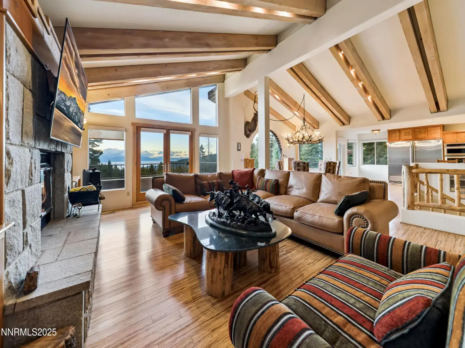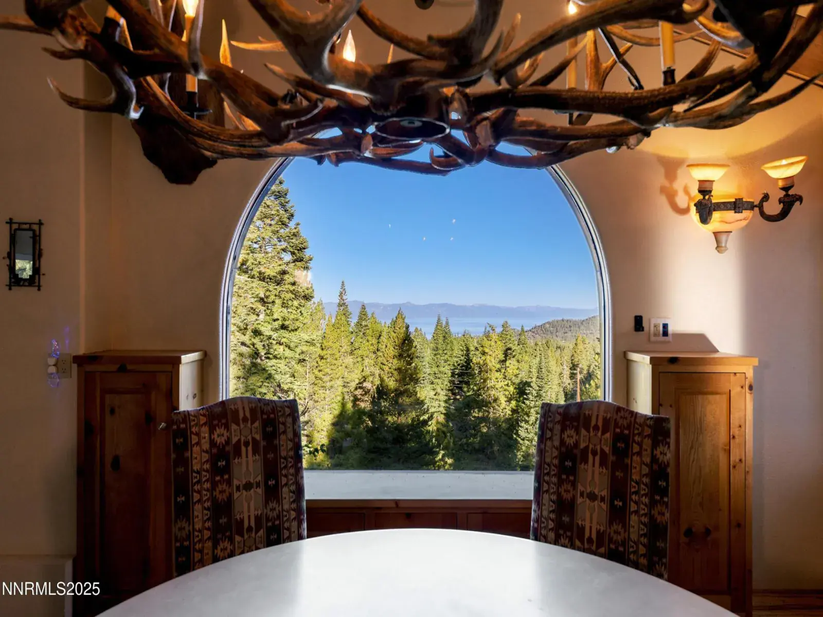 At the edge of Heavenly’s Boulder Lodge parking lot, where a discreet paved road vanishes into the forest, lies one of Lake Tahoe’s most private and extraordinary estates. Virtually unknown to the public, this rare compound is as secluded as they come—so hidden that most people don’t even know it exists. Behind a stone gate, the drive meanders nearly a mile through towering pines before revealing a setting unlike any other. Spanning over 3.2 acres across two parcels, the property encompasses three separate structures and borders endless National Forest land, with Edgewood Creek flowing nearby and the Tahoe Rim Trail just steps away. While wrapped in privacy, the location is uniquely central—just below Heavenly Ski Resort (with potential ski-in access from out-of-bounds terrain) and minutes to the lake, Edgewood Golf Course, and Stateline’s amenities. The centerpiece is the main residence, a three-story, 4,000+ sq. ft. architectural retreat with commanding lake views. Its great room is a showstopper, with vaulted ceilings, exposed beams enhanced by backlighting, bamboo floors, and a massive stone fireplace—all framing sweeping panoramas of Tahoe. Four bedrooms (including two suites) and four full baths are complemented by a mid-level family room, three fireplaces, and a versatile lower-level office with custom built-ins that could easily transition into a bedroom, theater, or gaming space. A series of rear decks stretch across the rear of the property, designed for entertaining against the backdrop of Tahoe sunsets. The detached ~1,200 sq. ft. guest house offers complete independence with its own two-car garage, two bedrooms (one ensuite), two full baths, and a full kitchen, dining area, and living room. Multiple decks invite guests to enjoy the views in privacy. A third structure houses a ~1,000 sq. ft. caretaker’s apartment with one bedroom suite, full kitchen, dining, and living areas. Covered stairs lead to its entry, while the unit itself is perched above a five-car garage—perfect for car collections, boats, or Tahoe’s essential toys. All three dwellings feature recently painted stucco exteriors, durable metal roofs, and a design that emphasizes longevity and low maintenance. Expansive asphalt parking areas provide ample space for RVs, trailers, and gatherings of any size. This is not just a property—it’s a legacy compound, a private hideaway of scale and stature rarely seen in Lake Tahoe. 130-140 Granite Crest stands as a once-in-a-generation opportunity to own a true hidden estate in the Basin.