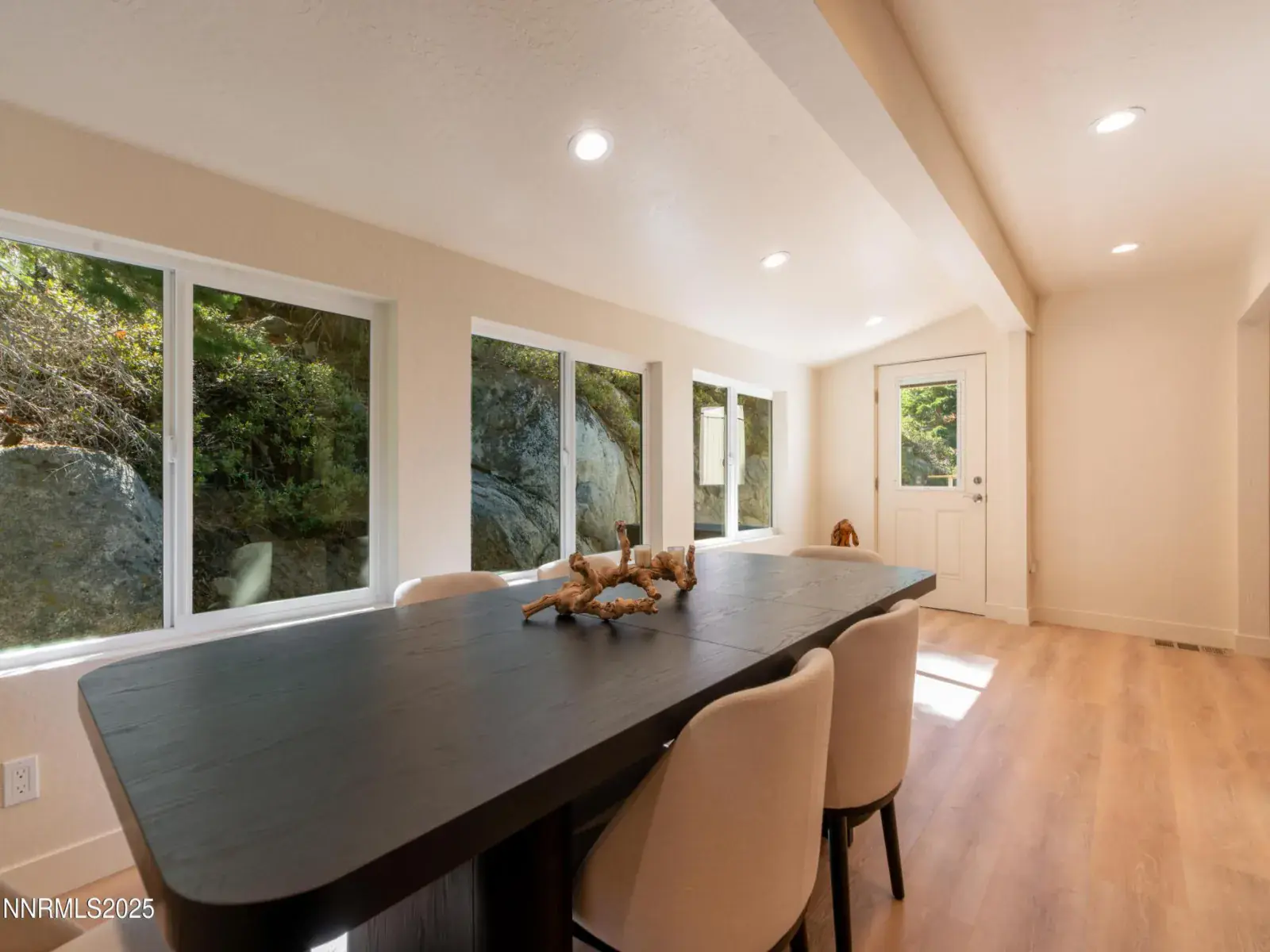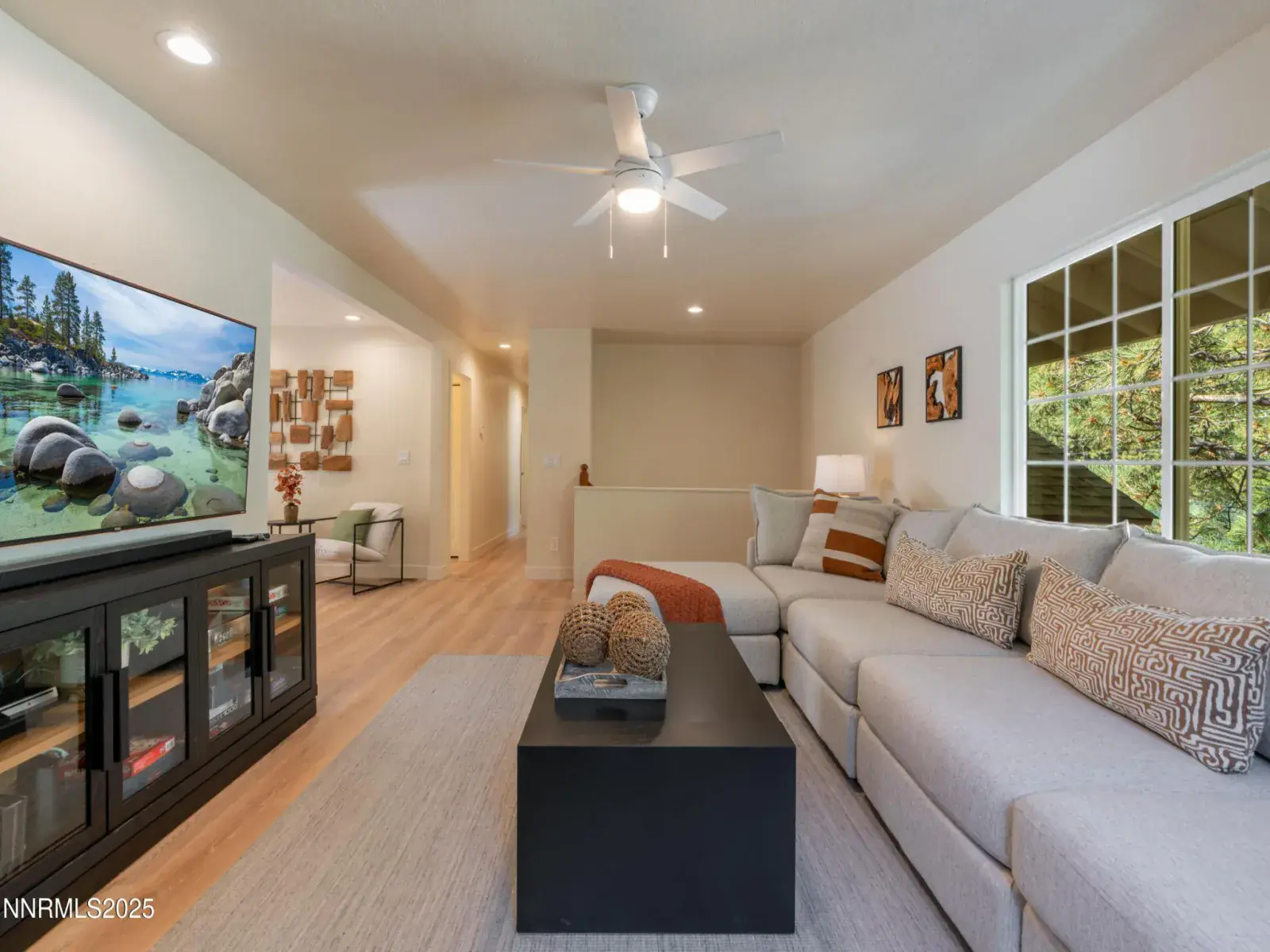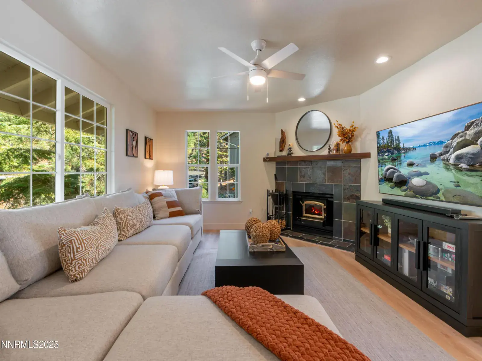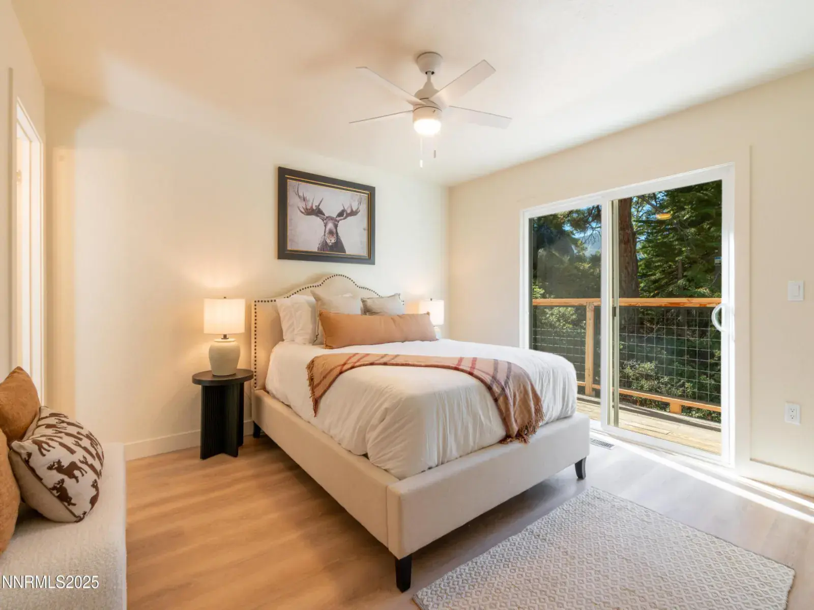 Beautifully renovated and furnished, this spacious 4-bedroom, 3-bath home blends modern comfort with mountain living, just minutes from Heavenly Ski Resort. The kitchen features stainless steel appliances, granite countertops, and stylish cabinetry that opens to a bright living area with newer flooring, recessed lighting, and ceiling fans. The enhanced dining space offers the perfect spot to relax year-round, while the private deck is ideal for outdoor entertaining. The fully updated bathrooms showcase contemporary finishes, and the extra-large two-car garage provides ample space for vehicles and storage. Located on the Nevada side, this home also offers the advantage of Nevada tax benefits, making it a smart and comfortable choice for full-time living or a mountain retreat.