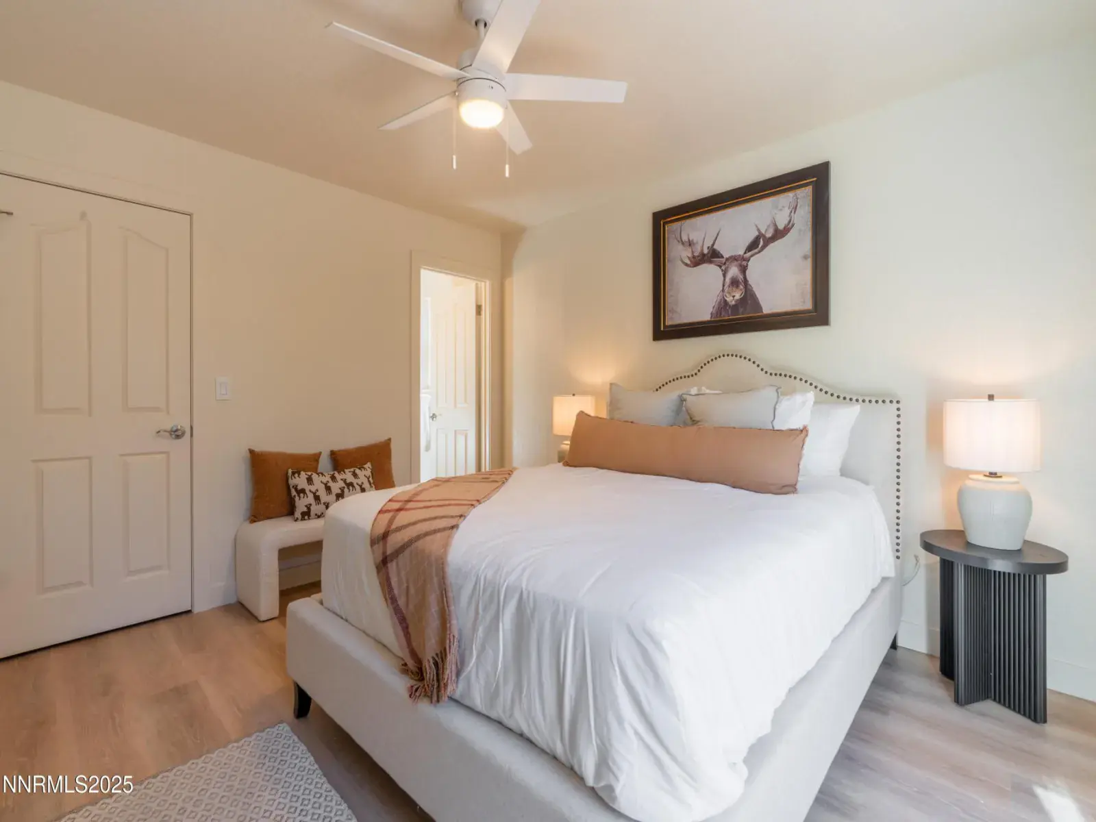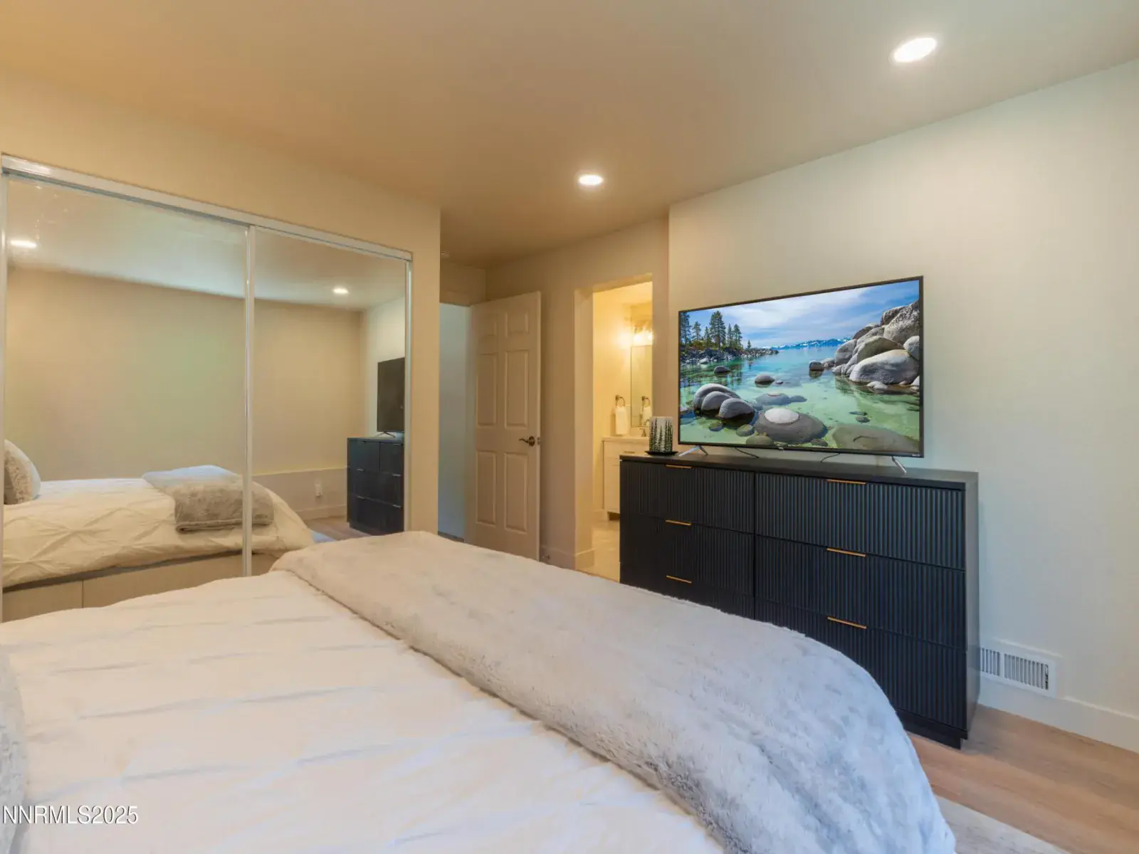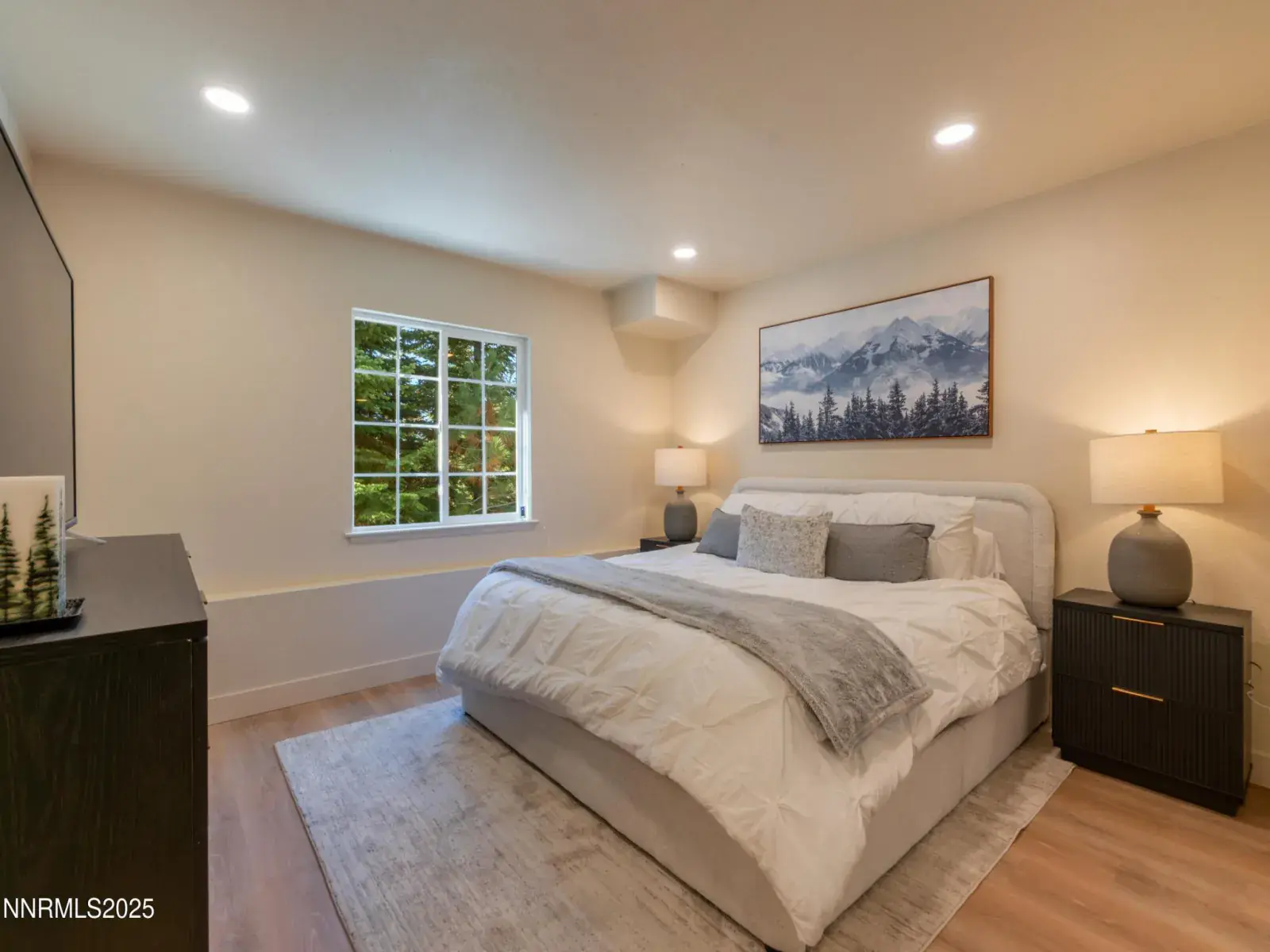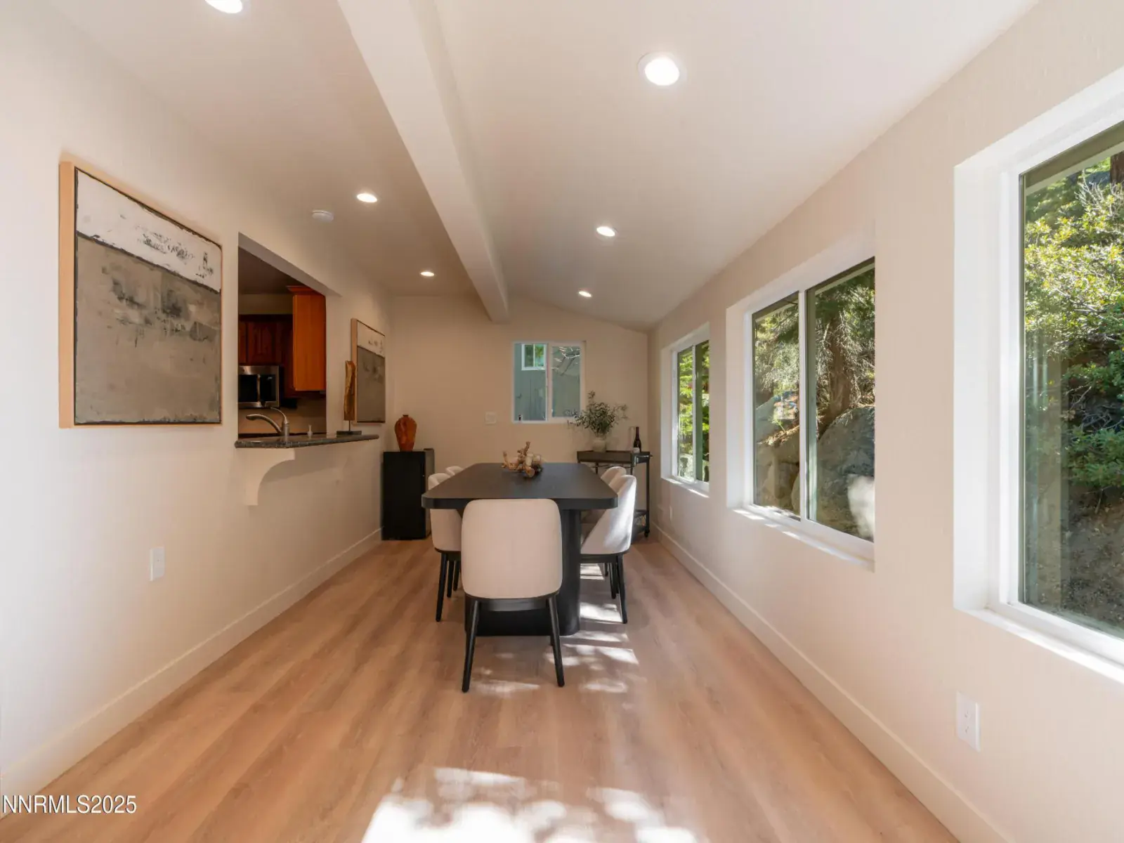 Beautifully renovated and furnished, this spacious 4-bedroom, 3-bath home blends modern comfort with mountain living, just minutes from Heavenly Ski Resort. The kitchen features stainless steel appliances, granite countertops, and stylish cabinetry that opens to a bright living area with newer flooring, recessed lighting, and ceiling fans. The enhanced dining space offers the perfect spot to relax year-round, while the private deck is ideal for outdoor entertaining. The fully updated bathrooms showcase contemporary finishes, and the extra-large two-car garage provides ample space for vehicles and storage. Located on the Nevada side, this home also offers the advantage of Nevada tax benefits, making it a smart and comfortable choice for full-time living or a mountain retreat.