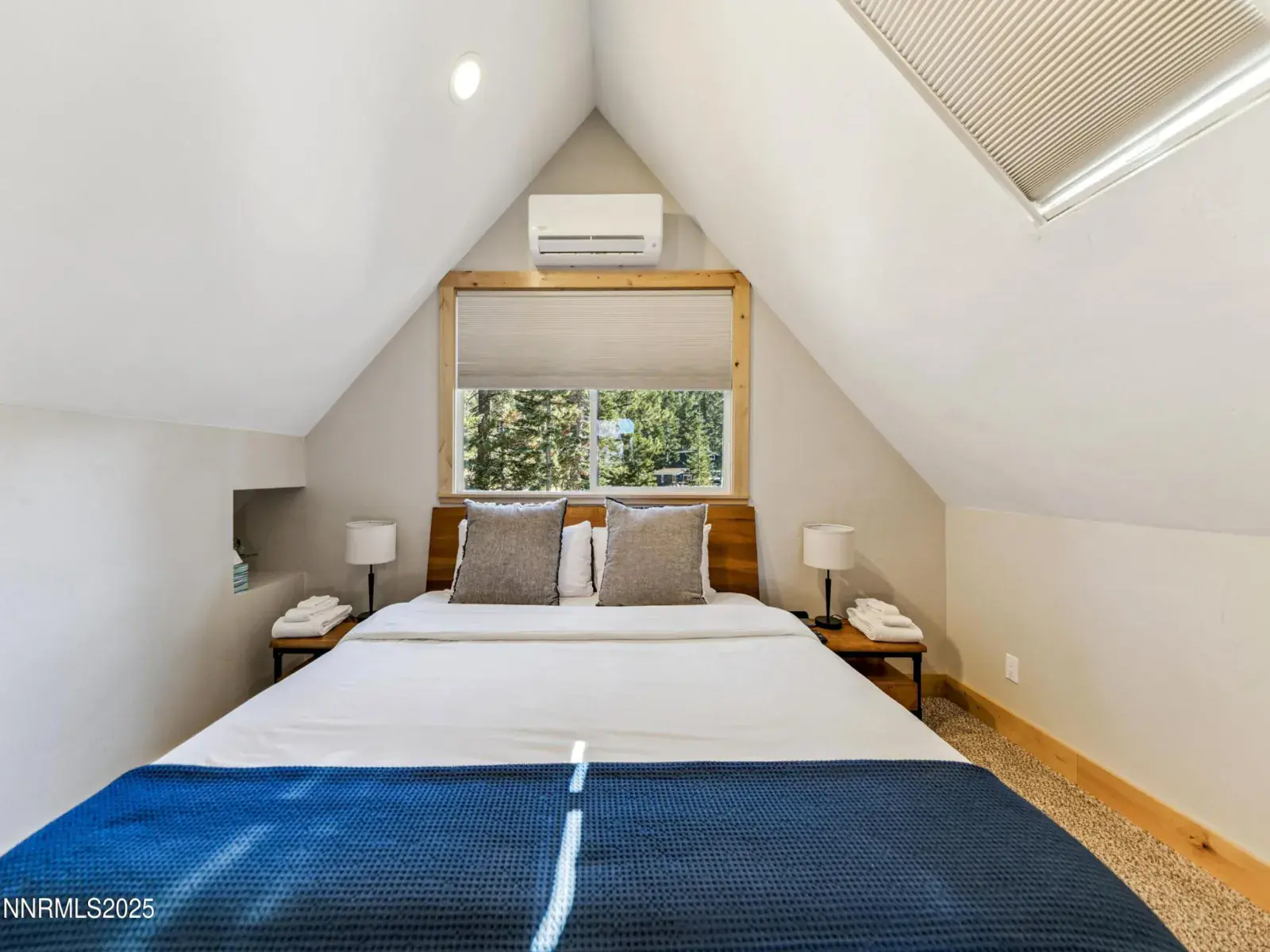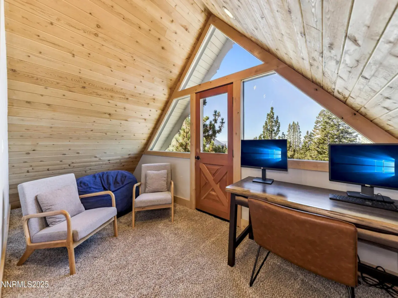 Panoramic mountain views from this completely remodeled, modern Tahoe Style cabin on a large .53-acre lot. Located only steps to miles of hiking and biking trials & only a few minutes to Heavenly Valley Ski Resort, this four bedroom, three bath home also has a separate family room and a loft area. All new everything including kitchen and three baths, windows, flooring, knotty alder doors, fixtures, lighting & interior paint. The upstairs master suite has vaulted ceilings, walk-in closet, new sink, vanity & even a skylight in the shower! Right off the en-suite master is a loft area with a cozy gas log fireplace and outdoor private deck with beautiful mountain views. This is a perfect area for an office or just to relax by the fire reading your favorite books. There are three gas log fireplaces, one in the living room, family room and the upstairs loft area. The entry level family room could be in-law quarters, with access to the outside from both the family room and bedroom. There are four new mini splits that work as heat & A/C for the entire house, all able to remotely control. Other features include a new washer/dryer & instant hot water heater in laundry room, wooden blinds, mud room and built in cabinets in garage, bear box, and a sun-drenched wraparound deck with views of Heaven Valley. There is also plenty of extra parking, including boat or RV parking. Being able to enjoy all of Lake Tahoe’s outdoor adventures is just steps from your door, as sledding, cross-country skiing, snow shoeing, & snowmobiling, in the winter and legal ATV riding, mountain biking and hiking the Tahoe Rim Trail & camping in the summer are only steps away! All new furnishings are negotiable depending on offer. Located just a few minutes to Heavenly Valley Ski Resort and all the downtown casino corridor, this cabin would be perfect as a primary home, vacation rental or a Lake Tahoe getaway.