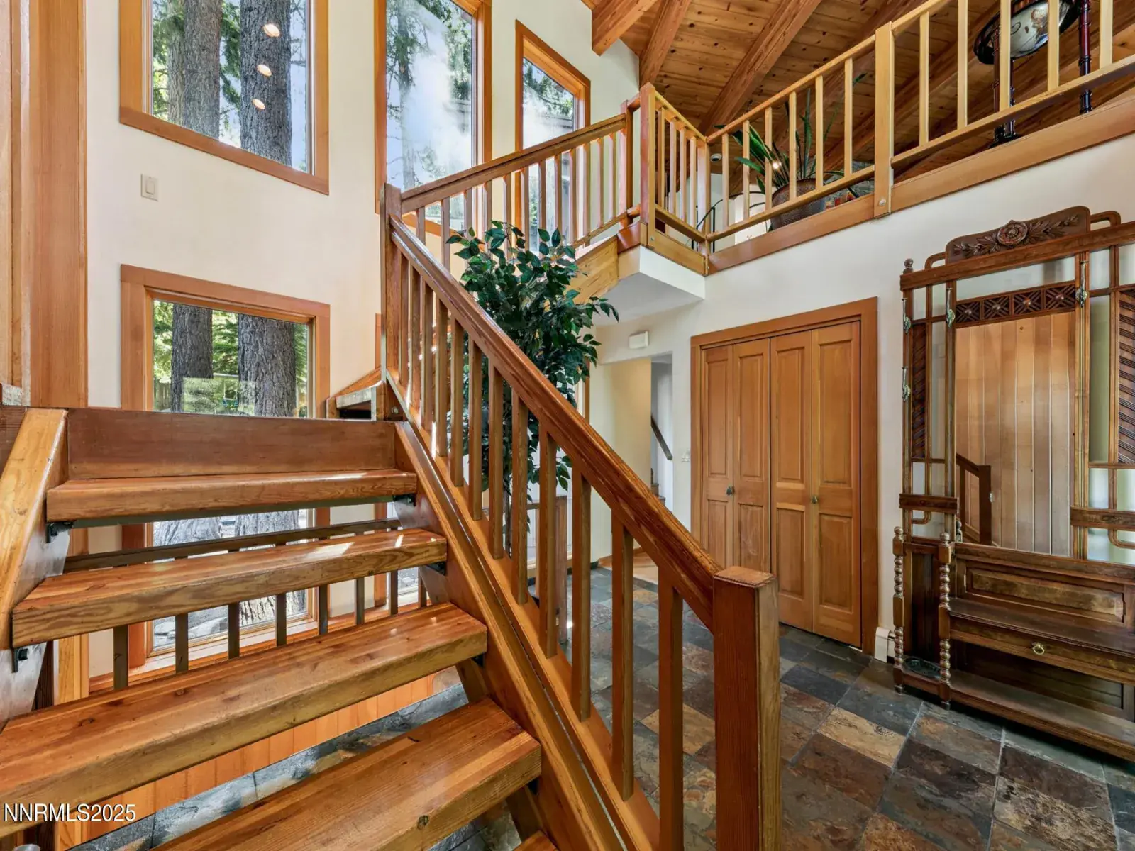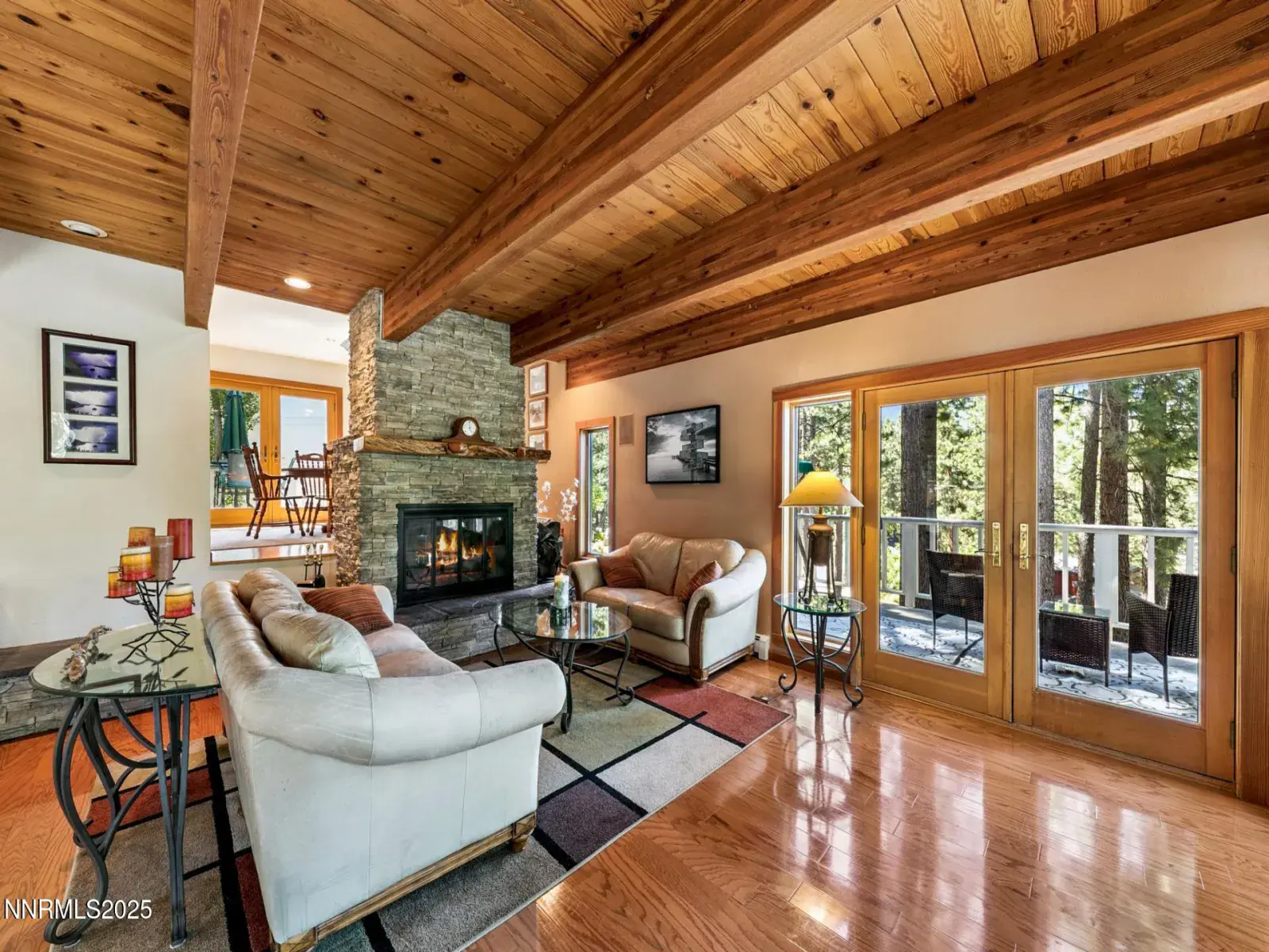Embrace life in a coveted neighborhood where stunning mountain views from expansive windows greet you each morning in sun-filled rooms designed to maximize the surrounding scenery. This home is nestled on a beautifully landscaped .34-acre lot with 2996 sq. ft. of living space. The peaceful and scenic backyard is a true refuge. With 4 spacious bedrooms, 2.5 attractively appointed bathrooms, and attached two car garage, this home offers very versatile family living. Upon entry you’ll be greeted by soaring open beam ceilings along with abundant natural light from the many large picture windows showcasing expansive mountain views. Enjoy the warmth and ambiance of the stone veneer fireplace in the heart of the living room and the standalone gas fireplace in the family room. The home has been updated with the perfect blend of Alpine charm and modern comfort. Step into the heart of the home with a spacious and attractively updated kitchen designed for family living and entertainment along with ample storage and a separate pantry. Featuring modern stainless-steel appliances, generous counter space, stylish cabinetry, and a large center island perfect for gatherings. The spacious primary suite includes a walk-in closet, jacuzzi tub, and separate shower. The adjoining outdoor deck is also wired for a large jacuzzi. Situated in a neighborhood that has Short Term Rental permit possibilities. Perfectly positioned near Heavenly Ski Resort, Lake Tahoe Beaches, restaurants and recreation areas. Shows pride of ownership and timeless appeal.