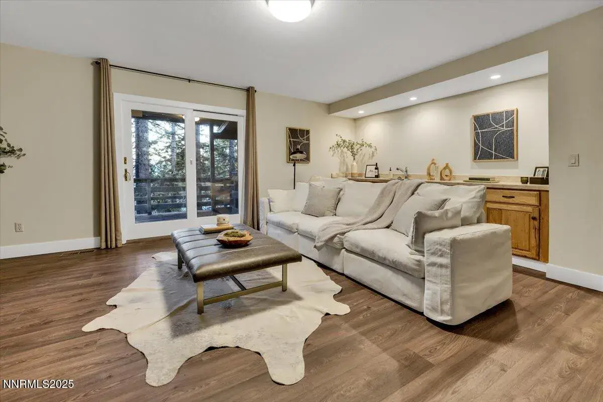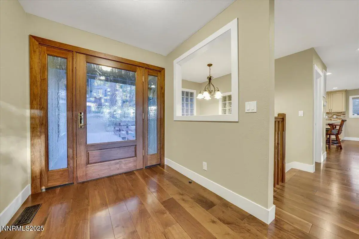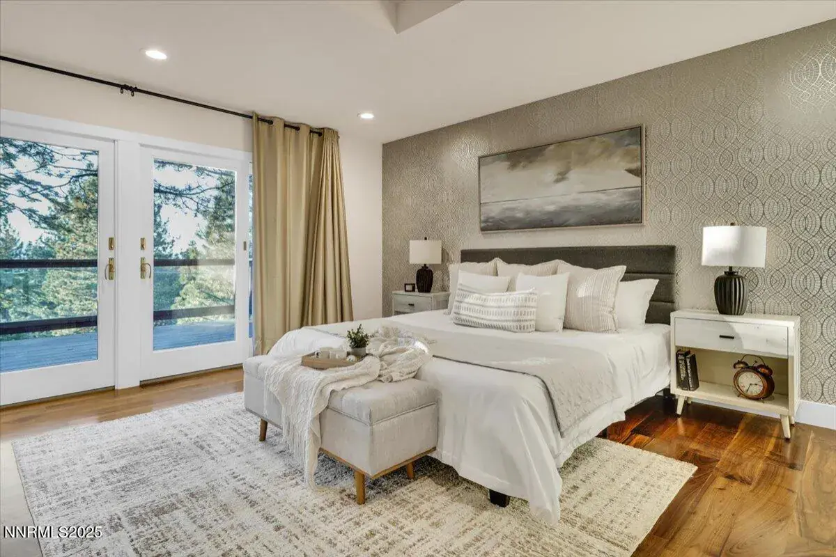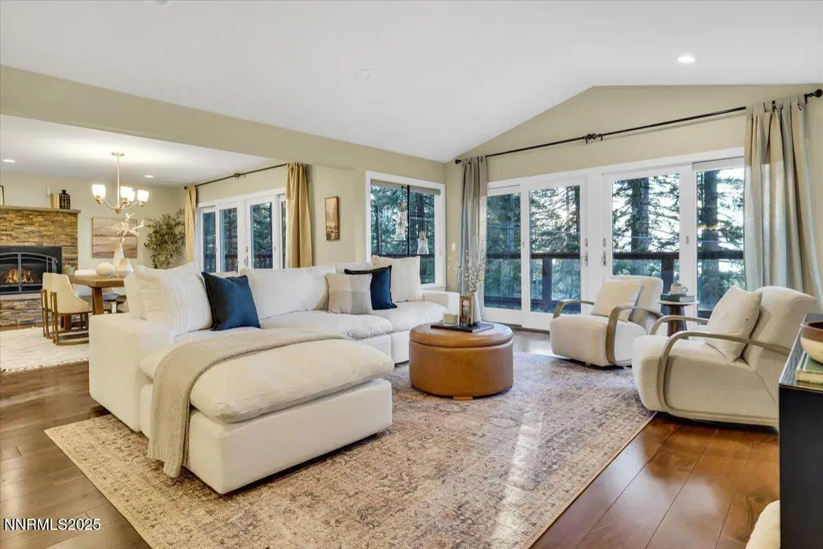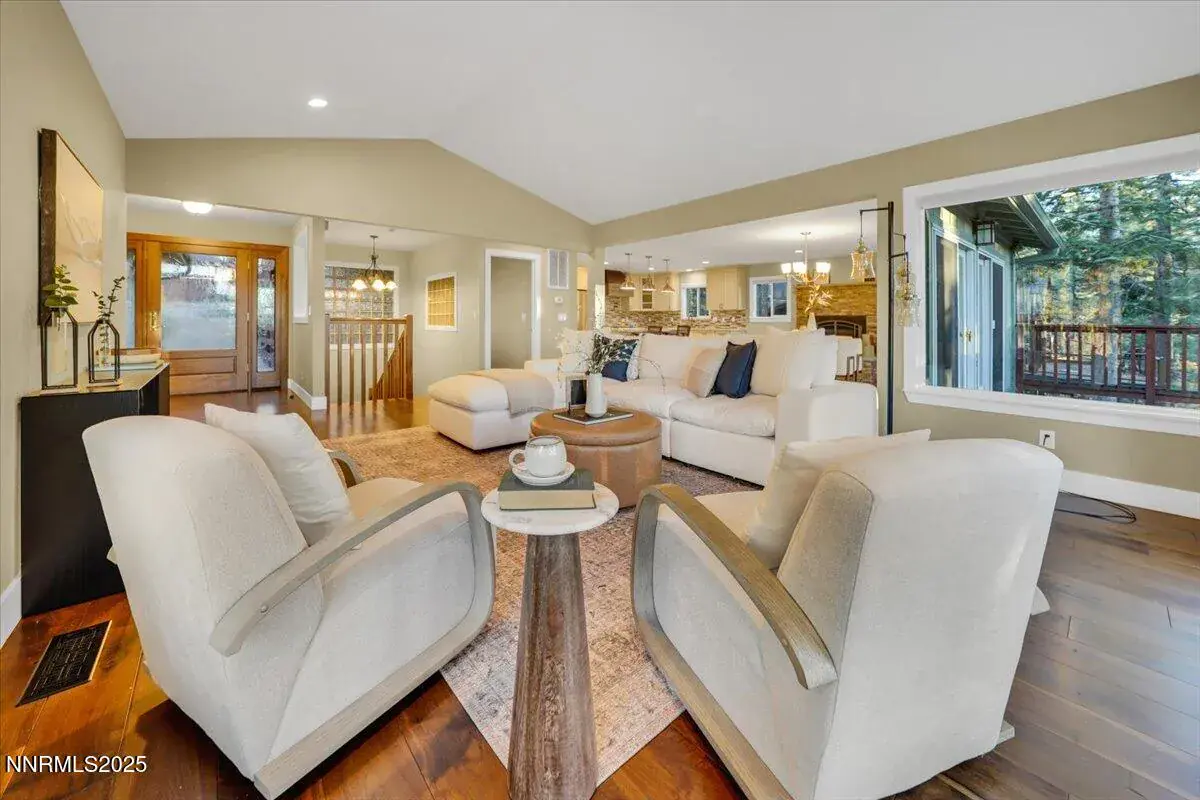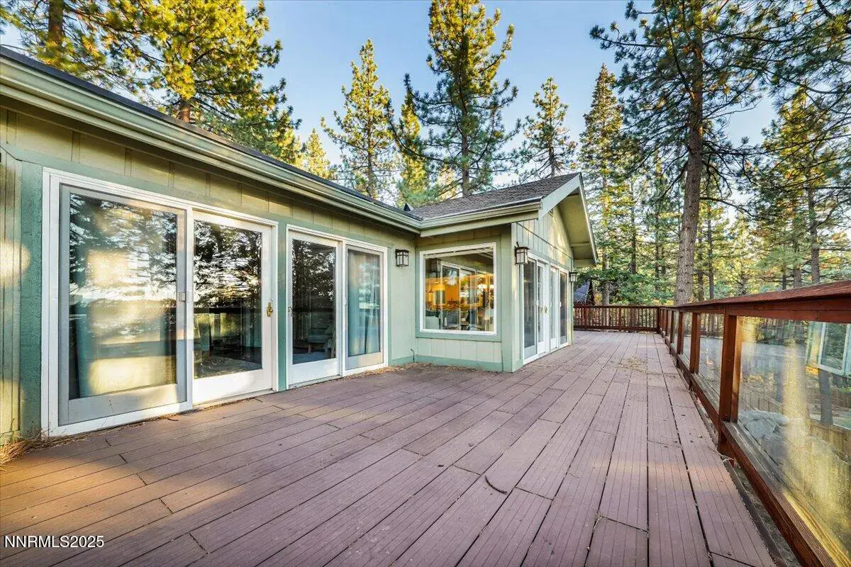 Experience refined mountain living with Lake Views! Beautifully crafted, tax friendly, Lake Tahoe, Nevada. This home showcases exceptional quality, materials, and attention to detail throughout.  Designed for both comfort and entertaining, this two-story residence features a luxurious primary suite, a spacious guest suite downstairs, two additional bedrooms, and a welcoming family room complete with a wet bar and fireplace. Every finish reflects thoughtful design—from the walnut hardwood floors and quartzite countertops with a leather finish to the custom Omega cabinetry and high-end Thermador and LG appliances in the gourmet kitchen.    Extensively renovated in 2017, the home blends timeless craftsmanship with a classic design, including heated floors, a large walk-in closet, Hunter Douglas window coverings, and upgraded heating and cooling systems and a wine cellar in the unfinished basement which holds hundreds of bottles.  Outdoor living is equally desirable, featuring composite decks with wood and glass railings that frame lake views and a fully fenced backyard. Additional highlights include, neighboring vacant land owned by the State of Nevada, a heated driveway with heat tape, Generac generator, two snowblowers, a finished crawl space with storage, and a two-car garage.  Meticulously renovated and beautifully maintained, this home is a testament to quality, pride, and the beauty of Tahoe living.