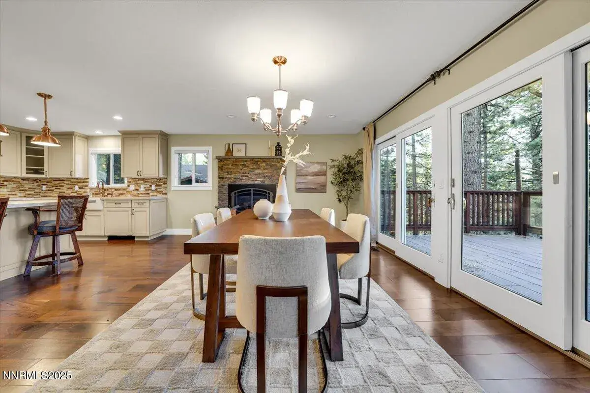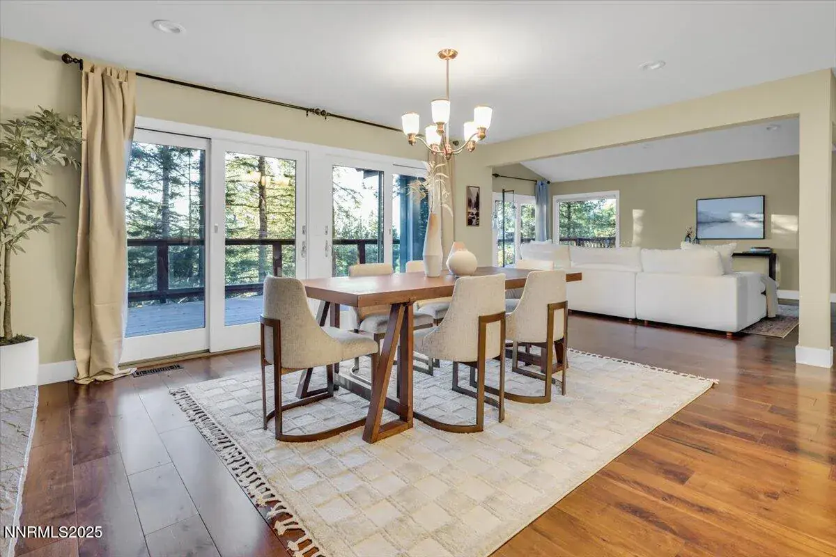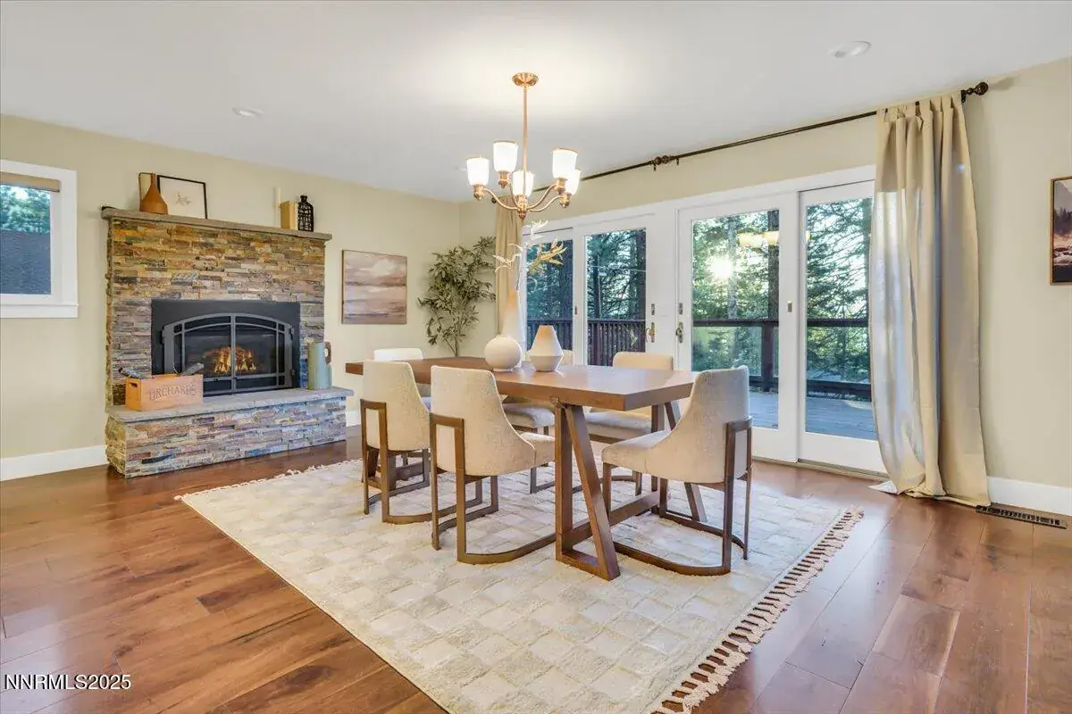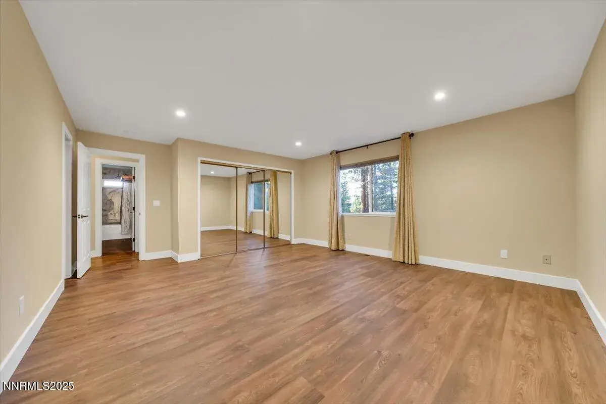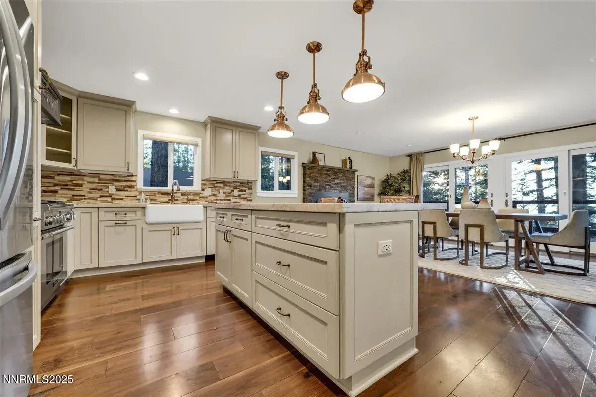 Experience refined mountain living with Lake Views! Beautifully crafted, tax friendly, Lake Tahoe, Nevada. This home showcases exceptional quality, materials, and attention to detail throughout.  Designed for both comfort and entertaining, this two-story residence features a luxurious primary suite, a spacious guest suite downstairs, two additional bedrooms, and a welcoming family room complete with a wet bar and fireplace. Every finish reflects thoughtful design—from the walnut hardwood floors and quartzite countertops with a leather finish to the custom Omega cabinetry and high-end Thermador and LG appliances in the gourmet kitchen.    Extensively renovated in 2017, the home blends timeless craftsmanship with a classic design, including heated floors, a large walk-in closet, Hunter Douglas window coverings, and upgraded heating and cooling systems and a wine cellar in the unfinished basement which holds hundreds of bottles.  Outdoor living is equally desirable, featuring composite decks with wood and glass railings that frame lake views and a fully fenced backyard. Additional highlights include, neighboring vacant land owned by the State of Nevada, a heated driveway with heat tape, Generac generator, two snowblowers, a finished crawl space with storage, and a two-car garage.  Meticulously renovated and beautifully maintained, this home is a testament to quality, pride, and the beauty of Tahoe living.