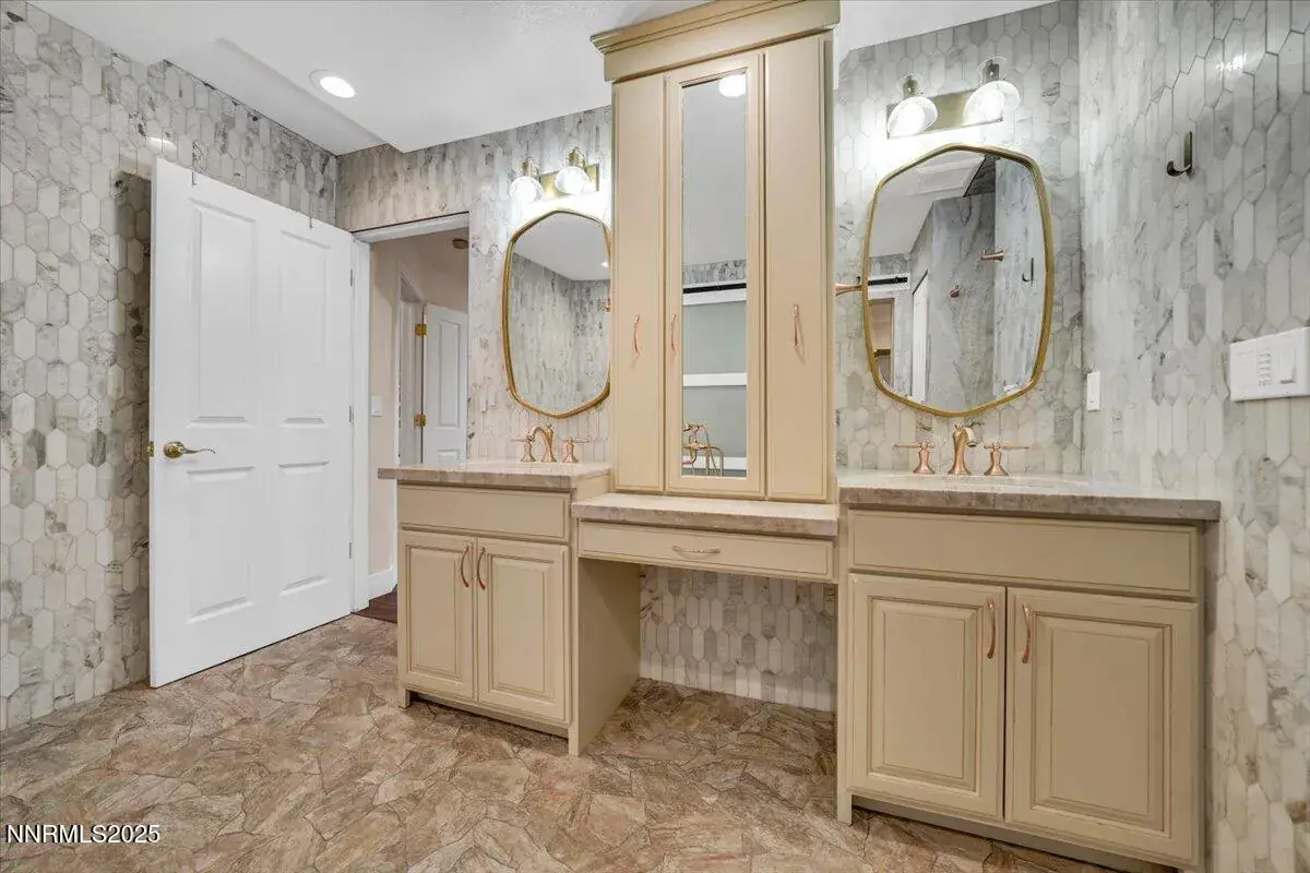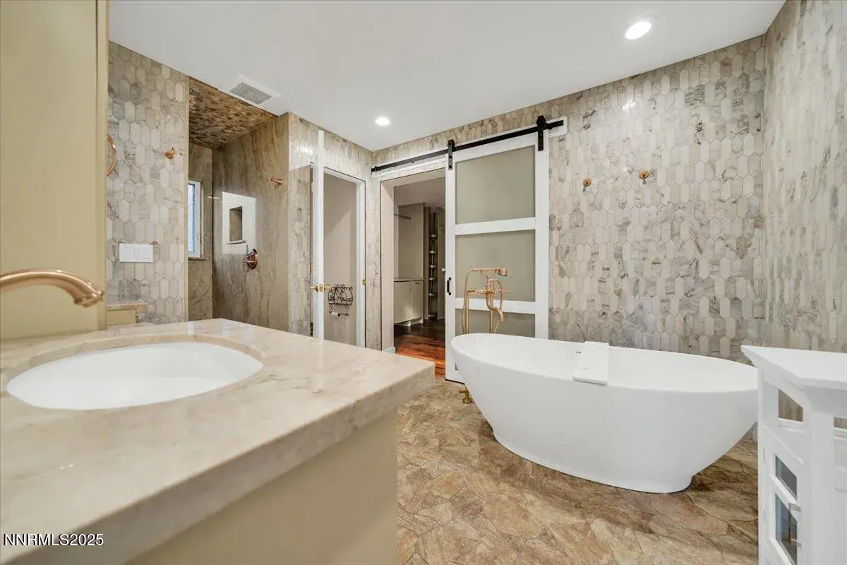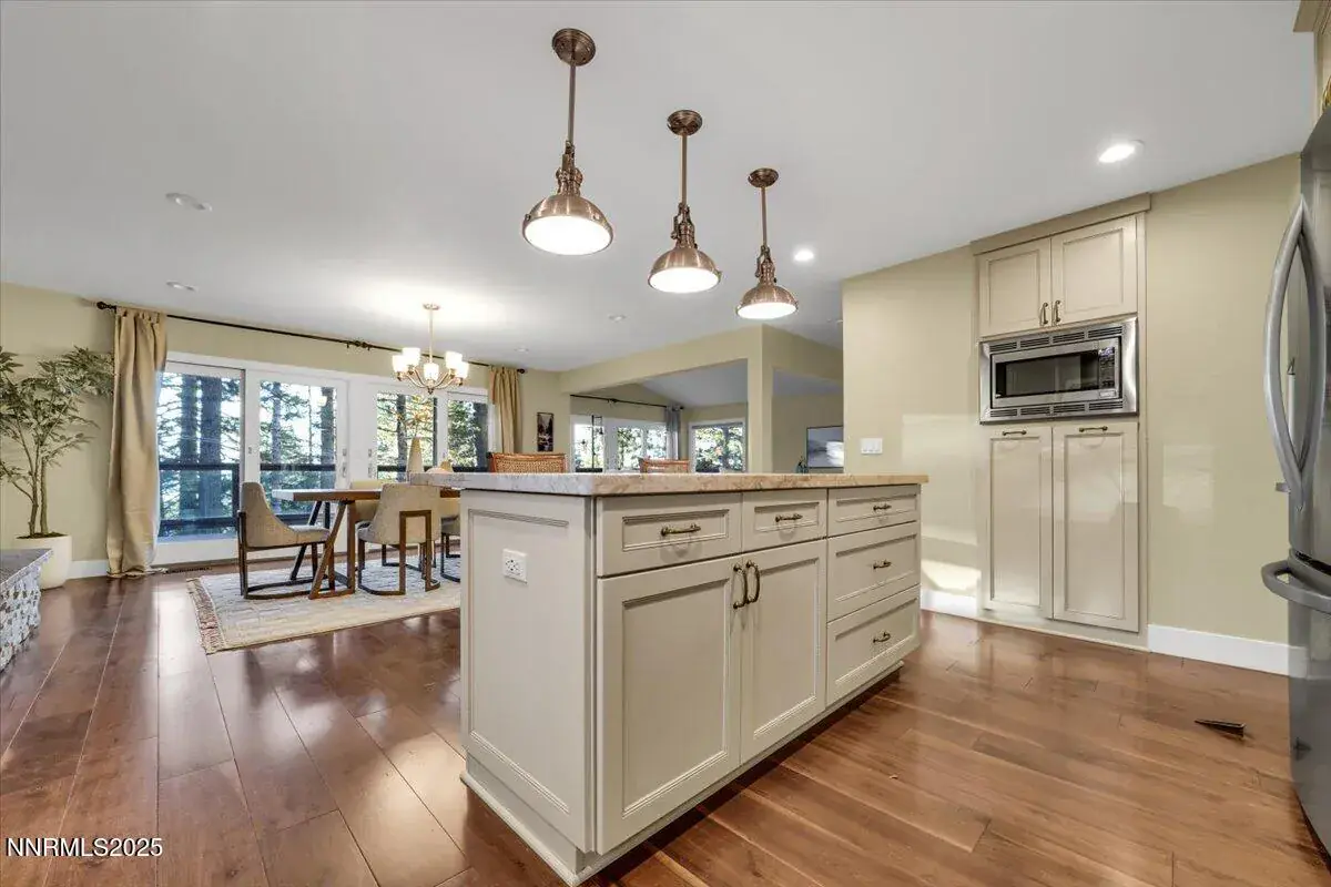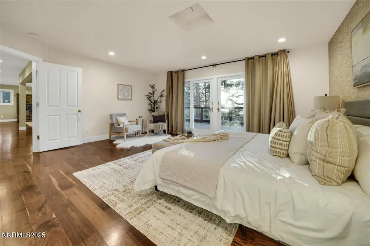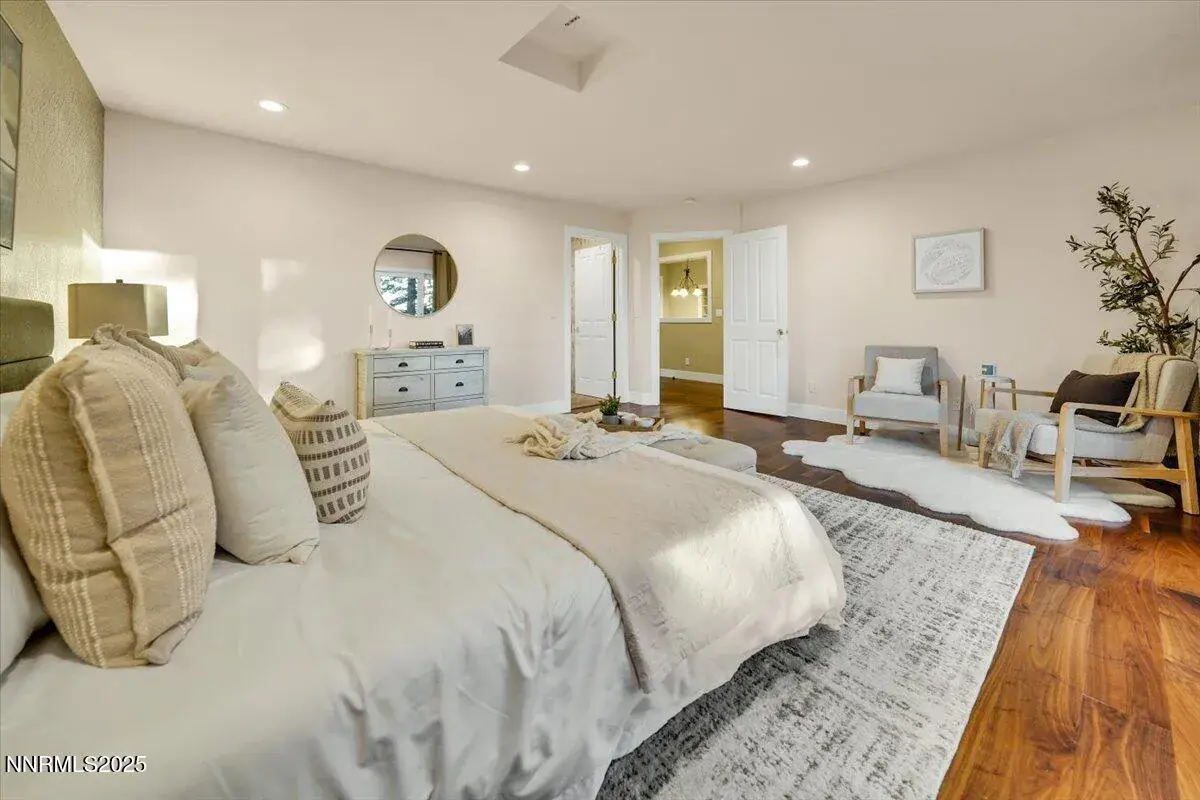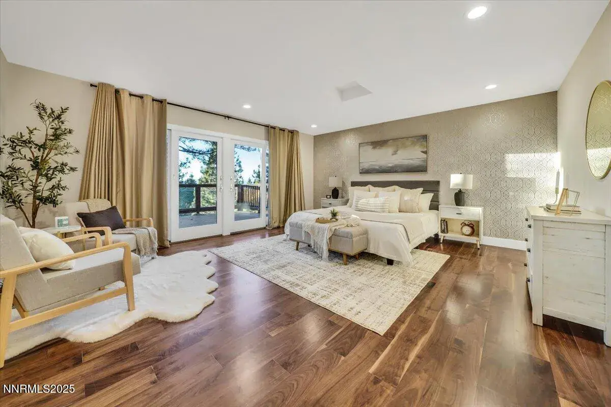 Experience refined mountain living with Lake Views! Beautifully crafted, tax friendly, Lake Tahoe, Nevada. This home showcases exceptional quality, materials, and attention to detail throughout.  Designed for both comfort and entertaining, this two-story residence features a luxurious primary suite, a spacious guest suite downstairs, two additional bedrooms, and a welcoming family room complete with a wet bar and fireplace. Every finish reflects thoughtful design—from the walnut hardwood floors and quartzite countertops with a leather finish to the custom Omega cabinetry and high-end Thermador and LG appliances in the gourmet kitchen.    Extensively renovated in 2017, the home blends timeless craftsmanship with a classic design, including heated floors, a large walk-in closet, Hunter Douglas window coverings, and upgraded heating and cooling systems and a wine cellar in the unfinished basement which holds hundreds of bottles.  Outdoor living is equally desirable, featuring composite decks with wood and glass railings that frame lake views and a fully fenced backyard. Additional highlights include, neighboring vacant land owned by the State of Nevada, a heated driveway with heat tape, Generac generator, two snowblowers, a finished crawl space with storage, and a two-car garage.  Meticulously renovated and beautifully maintained, this home is a testament to quality, pride, and the beauty of Tahoe living.