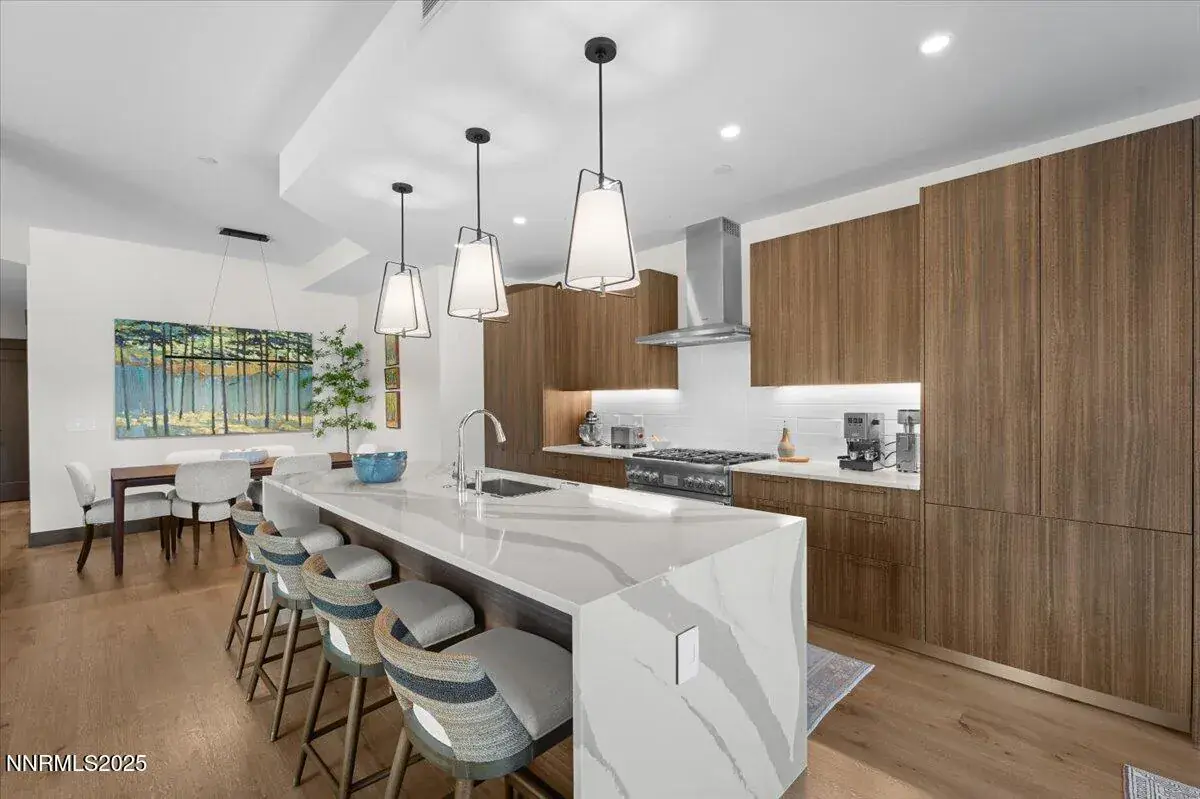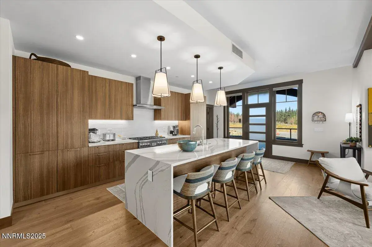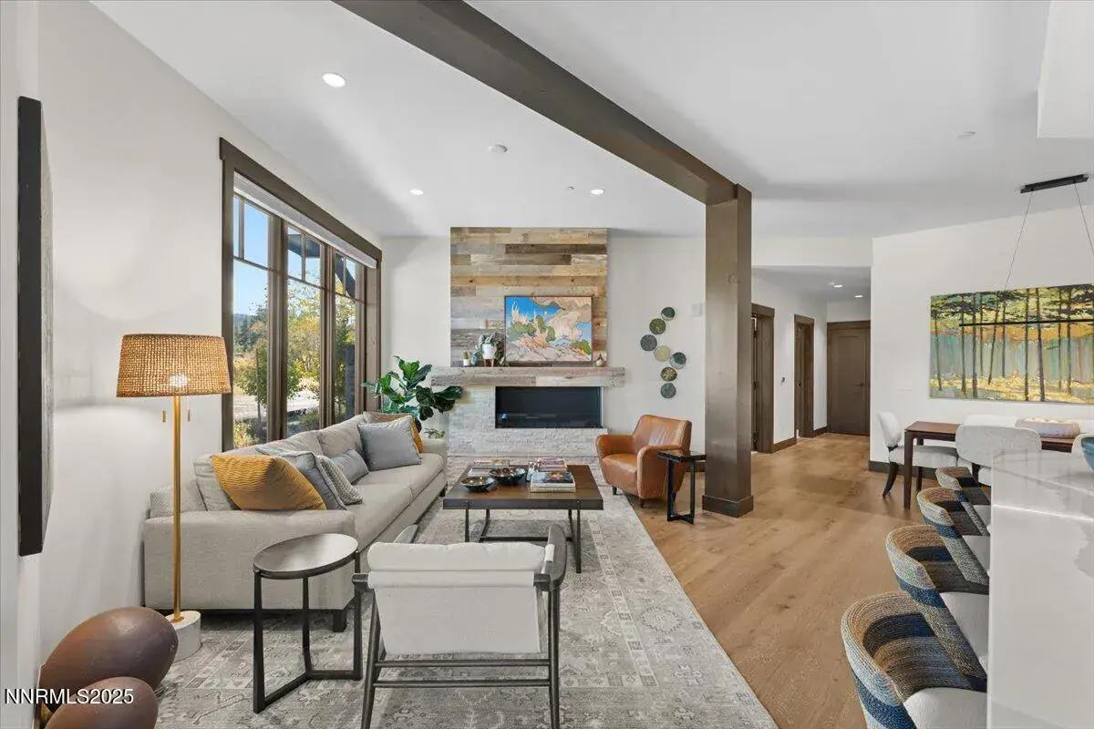 Step into refined mountain living. This exceptional home captures the essence of Tahoe’s natural beauty with sweeping meadow and mountain vistas, including the iconic Round Hill and Castle Rock. Inside, soaring 10-foot ceilings and an open, thoughtfully designed floor plan create a sense of space and flow—perfect for both everyday living and effortless entertaining. The gourmet kitchen, centered around a generous island, invites connection and conversation, whether you’re hosting friends or enjoying a quiet morning coffee. The primary suite offers a serene retreat, thoughtfully separated from the guest bedrooms for ultimate privacy. Unwind by the fireplace or indulge in the comfort of radiant heated floors that keep the home cozy year-round. Practical luxury abounds with a heated driveway and garage—making winter living as effortless as it is enjoyable. Blending elegance, comfort, and convenience, this home is more than a residence—it’s a place to create lasting memories surrounded by Tahoe’s timeless beauty