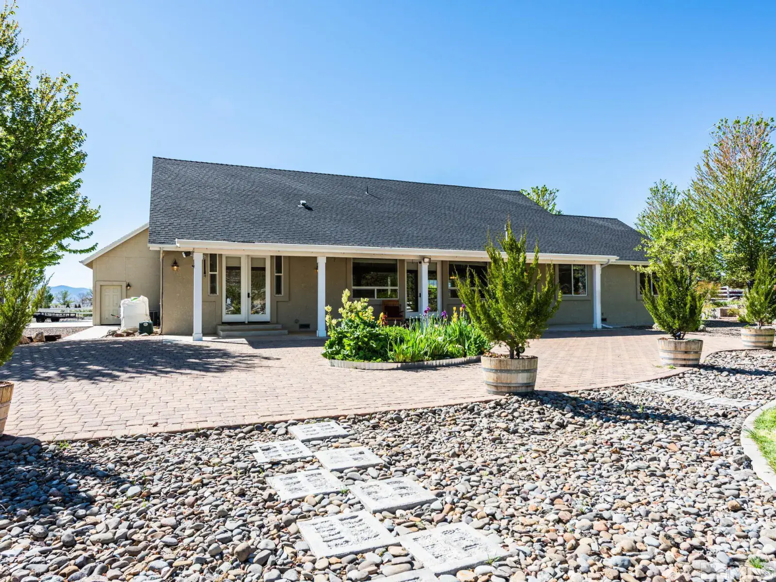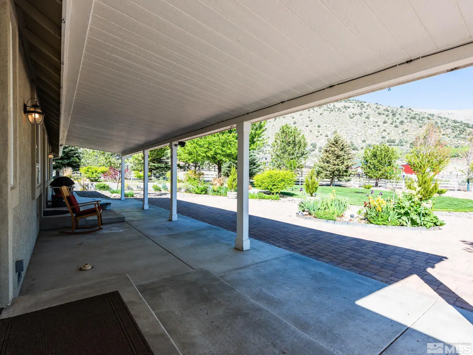 A beautiful location in view filled Smith Valley, nestled at the base of the Pinenut Mountains, far from light pollution and traffic, offering rural living in a contemporary home with all the space you need. Bring your horses, sport vehicles and pets to this fully fenced and gated 2 acre park-like corner lot with mature trees, low maintenance landscaping and an opportunity to experience quiet county life. Lots of space to build a barn or RV garage. Please see the aerial pictures and Virtual Tour!, One level living for ease and convenience in this 3+ bedroom, 3.5 bath home of 2920sf. Vaulted ceilings add to the spacious feel of the Great Room and dining areas that include a fireplace and a comfortable sitting area with a pellet stove. The kitchen is open to the living space and features granite counters, Stainless Steel appliances, double ovens, counter top range with pot filler, a pantry and breakfast area. A well appointed office area is adjacent to the great room and the 2nd and 3rd bedrooms The split floor plan has the primary bedroom at the rear allowing French doors to access the covered patio. The primary bathroom has double sinks, a large shower and soaking tub. A big plus is an upper bonus room with full bath for your guests. The home has lots of storage options including a pull-down loft ladder. Check all the pictures to see the many features of this home including the 3 attached garages, the detached 18 x 20 workshop/2car garage, the storage shed, the extensive concrete and paver outdoor areas, the lawn areas and the 60+/- maturing trees. Enjoy the covered patio for entertaining your friends or to enjoy the sunsets!