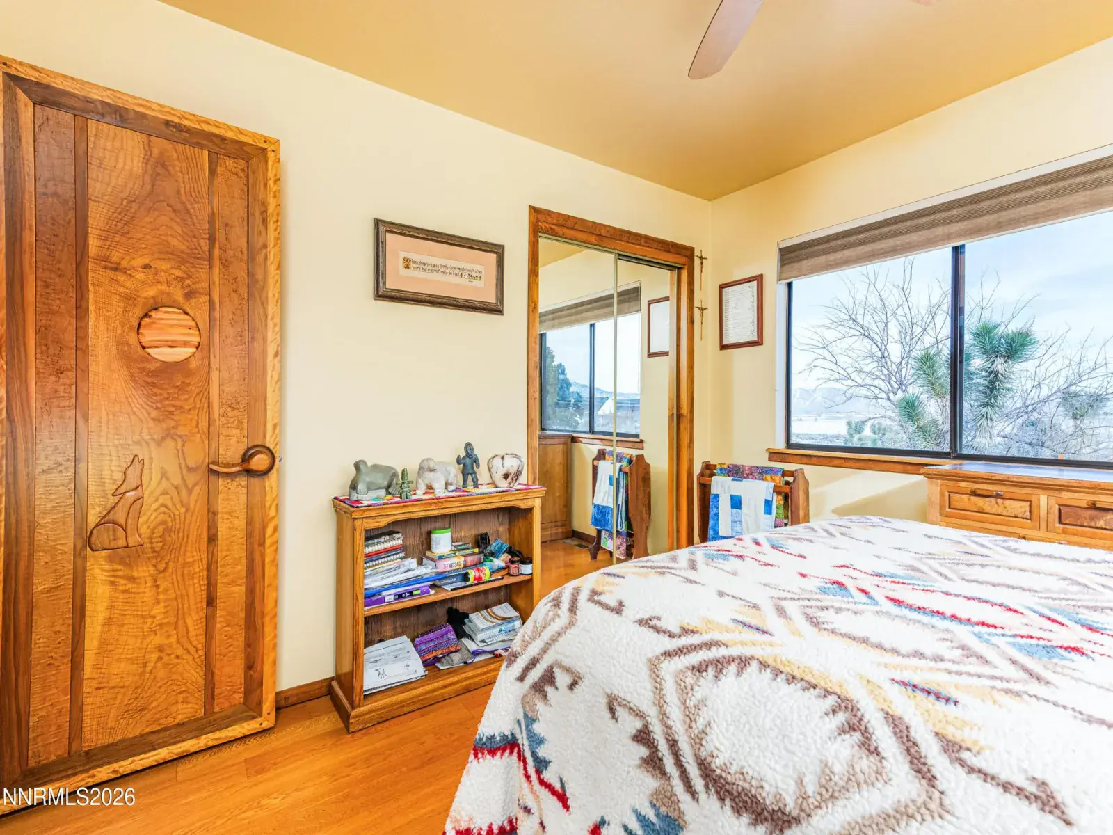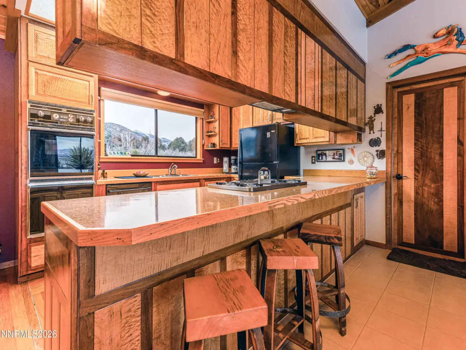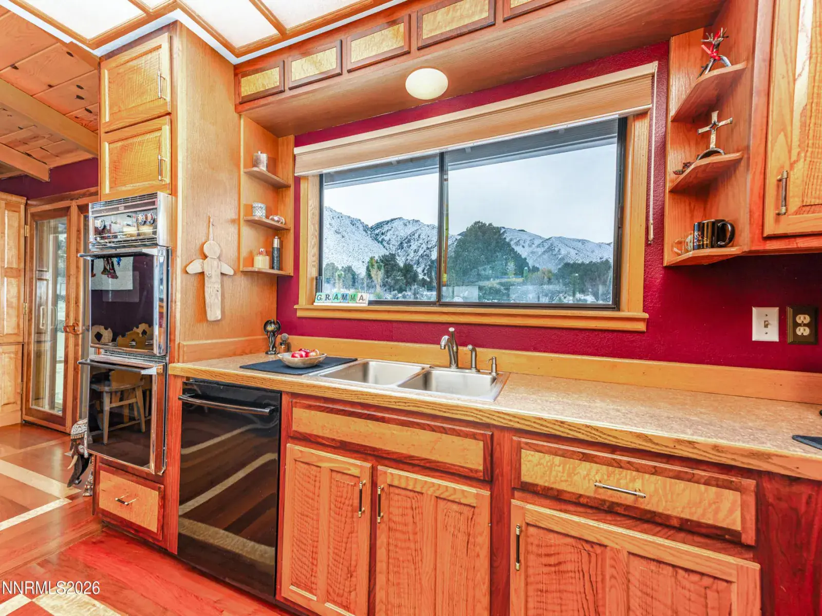 Experience Smith Valley’ beautiful views and rural peace and quiet, and enjoy the warmth of the real wood interior artistry and creativity of a home loved and cared for over a 30+ year ownership. A great bonus is the 2900sf work shop! Perfect for vehicles, hobbies or your latest projects. Combined with the desert vegetation against a back drop of the Pinenut Mountains and almost 360 deg views, this is country living without being rustic. Enter the great room area – light and bright with vaulted, pine planked ceilings, tiled floor and an efficient pellet stove sited on a stone hearth against a rock wall. Wide windows bring in the views of the green valley and distant mountains The adjacent dining and kitchen area have real hardwood floors and a combination of other contrasting woods in the kitchen cabinetry. The artistry continues through the home with decorative doors and frames showing desert and mountain motifs. Views are available from all bedrooms adding to the country feeling without losing privacy. Neighbors are all on approx.. 5 acre lots, so mostly not in the view. Lots of space for your horses and easy access to thousands of acres of BLM land for riding hiking, or off road vehicles. This combination of home and shop is exactly what you need! Please see the Virtual Tour and ask your Buyer’s Agent to set up an in-person visit.