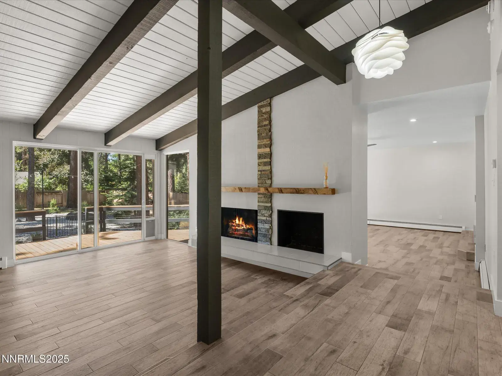 Contemporary Mountain Retreat in Coveted Skyland Welcome to 189 Ray Way, an elegantly renovated contemporary home nestled in the prestigious lakeside community of Skyland in Zephyr Cove. This stylish residence offers a seamless blend of mountain charm and modern sophistication, with open-beam vaulted ceilings, a striking rock wood burning fireplace, and expansive picture windows that flood the interiors with natural light. Designed for both relaxation and entertaining, the main level features two spacious living areas, each with direct access to a generous deck and a beautifully landscaped, fully fenced backyard. A large fire pit invites gatherings under the stars, while the oversized deck is ideal for summer dining and soaking in the serenity of Tahoe’s east shore. The gourmet kitchen is a showpiece with Sub-Zero appliances, sleek modern finishes including a wine cellar and ample space for hosting guests in style. A bedroom and full bath on the main level offer convenience and flexibility, while upstairs, the private primary suite and additional guest bedroom and bath provide comfort and retreat. Residents of Skyland enjoy exclusive access to a private sandy beach complete with kayak and paddleboard storage—just steps away from the lake’s edge. Legal Disclaimer: Property photos may include digital enhancements and/or virtual staging. Actual property condition may differ.