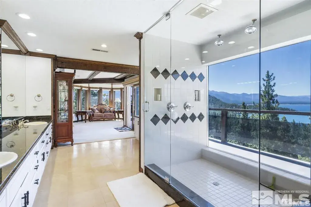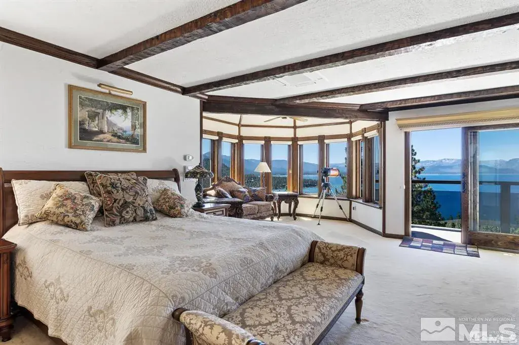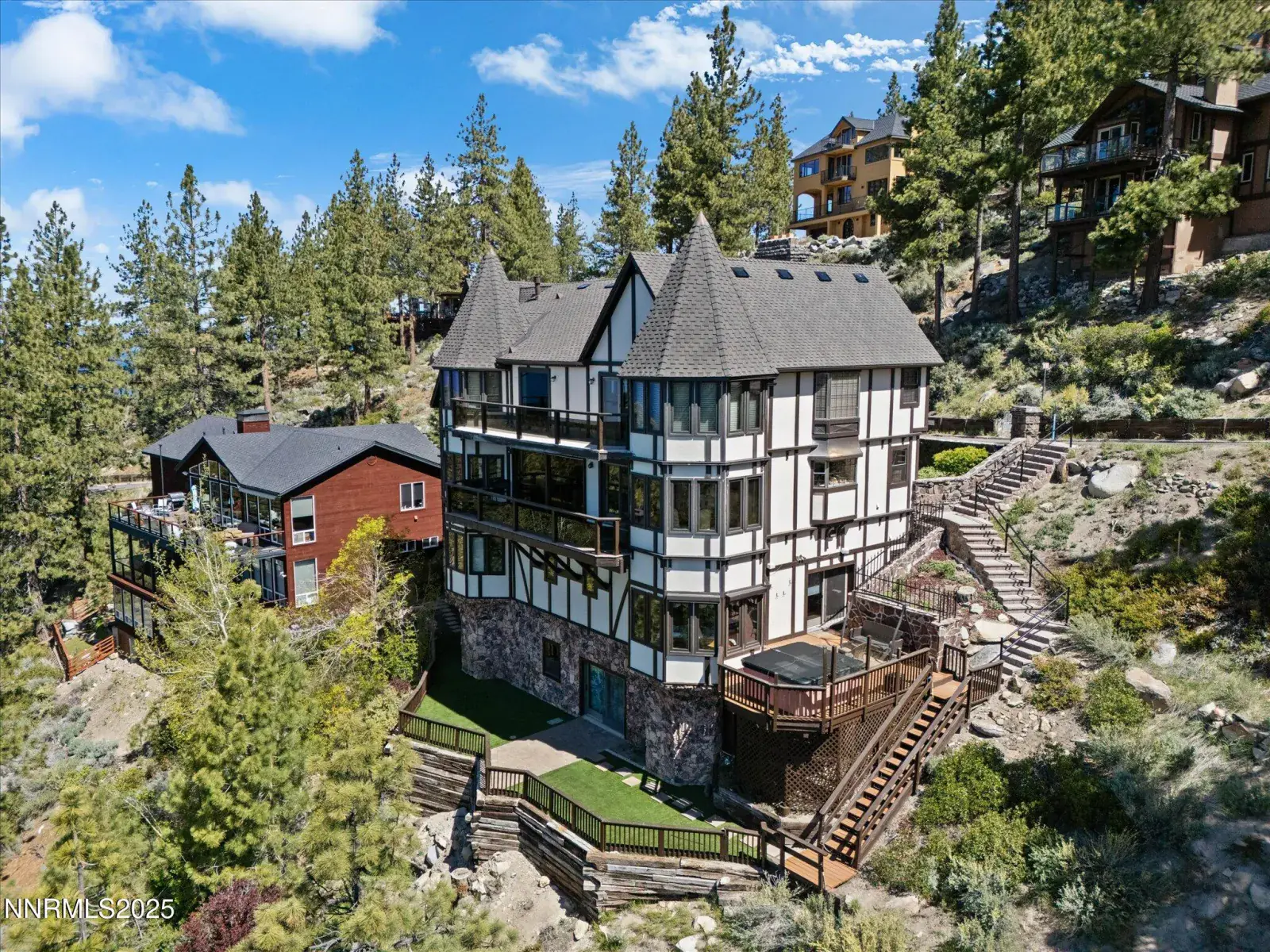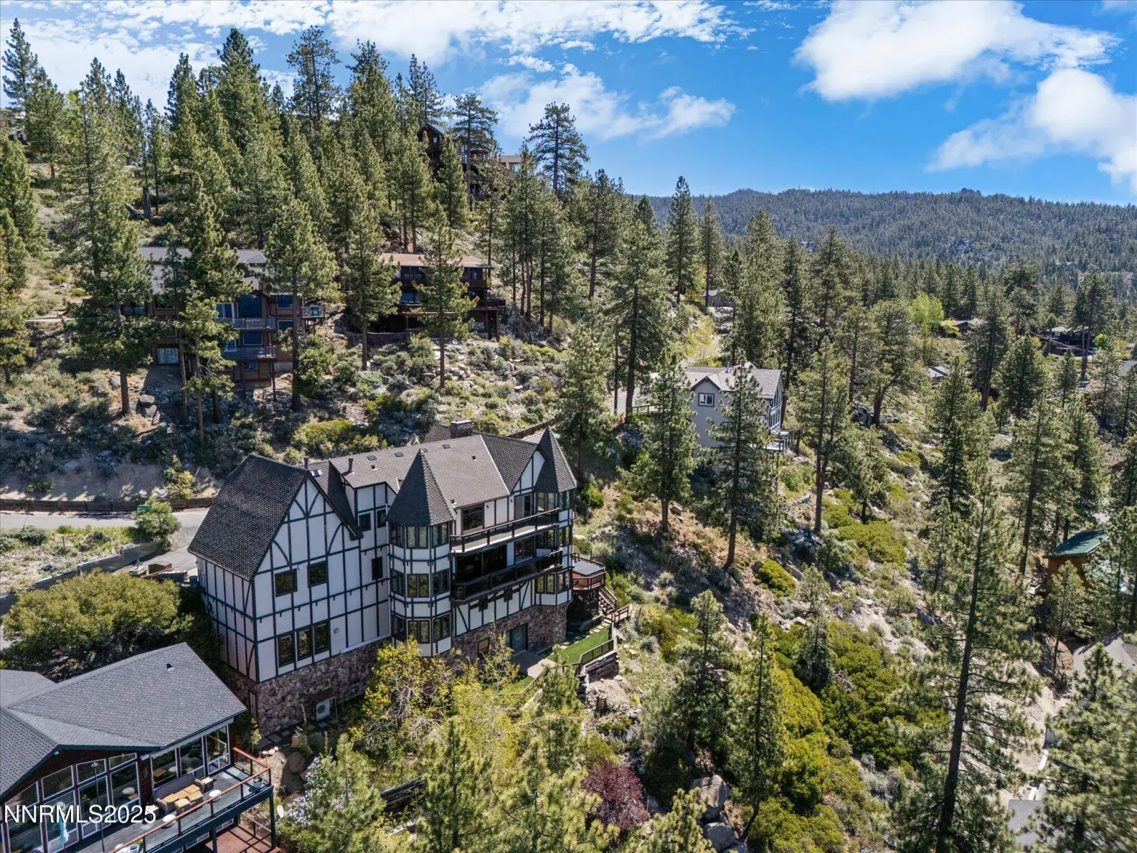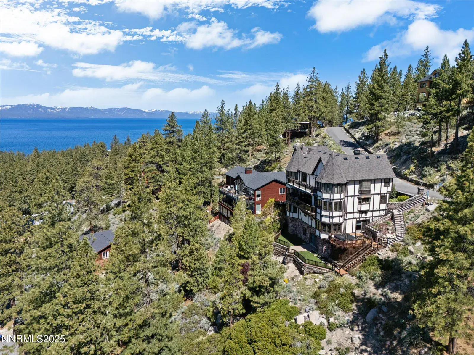 Experience the grandeur of this extraordinary Tudor-style Tahoe castle, where Old World elegance meets modern luxury in a setting beyond compare. Offering sweeping, unobstructed southwest-facing lake views that stretch from the slopes of Heavenly Ski Resort to the North Shore of Lake Tahoe, this rare architectural treasure is perched on a premier cul-de-sac lot in Zephyr Heights — one of the most coveted neighborhoods on the Nevada side of the lake. Owner financing available for qualified applicants. Recently revitalized with extensive updates, including a brand-new roof, this stately residence invites you into nearly 5,800 square feet of refined mountain living, spread across multiple levels designed to inspire both grandeur and comfort. Step through the castle-style entry and be transported into a world of craftsmanship, featuring custom stonework, exposed beam ceilings, warm wood finishes, and floor-to-ceiling windows that frame the lake like a living painting. The upper-level primary suite feels like a five-star retreat, offering two cozy fireplaces, central AC, a private office, oversized walk-in closet, and a spa-style bathroom that stuns — with a soaking tub set in a turreted alcove overlooking the water and a glass-enclosed shower with panoramic views. Just outside, a private deck offers a front-row seat to Tahoe’s famed sunsets. Adjacent, a loft-style sixth guest suite includes its own en-suite bath — ideal for guests, in-laws, or a home office. The heart of the home — a chef’s kitchen — has been thoughtfully updated with quartz countertops, two large center islands, new stainless steel appliances, and exquisite cabinetry. The adjacent octagonal formal dining room offers a dramatic yet intimate setting for up to eight guests, while the lakeview living room features a grand rock fireplace, large screen TV, built-in wet bar with quartz counters, and a sunken conversation pit that opens to an expansive outdoor deck. Downstairs, the amenities continue: a second full kitchen, a family room with space for games or media, a dedicated art studio, dry sauna, and a 300-bottle wine cellar. A game room with pool table and direct access to the spa patio creates the perfect après-ski gathering space. Three additional bedroom suites provide ultimate flexibility for multi-generational living, vacation hosting, or luxurious guest quarters. Outside, newly installed pavers, tiered stone patios, and professional landscaping complement the home’s storybook architecture. Soak in the hot tub while taking in a view that rivals any five-star resort. Additional highlights include forced air heating, split AC units for individual comfort zones, a two-car garage with additional driveway parking, a private stone stairway leading to the lowest level, and a bonus off-street parking area for two more vehicles — rare in the hills of Tahoe. Tucked just minutes from the excitement of Stateline casinos, the world-class Edgewood Golf Resort, and the iconic beaches of Lake Tahoe’s East Shore, this enchanting property offers the perfect balance of peaceful seclusion and unmatched access. Whether you’re seeking a luxurious full-time residence, an investment-grade vacation home, or a generational estate to pass down for years to come — this is your castle in the sky. Legal Disclaimer: Property photos may include digital enhancements and/or virtual staging. Actual property condition may differ.